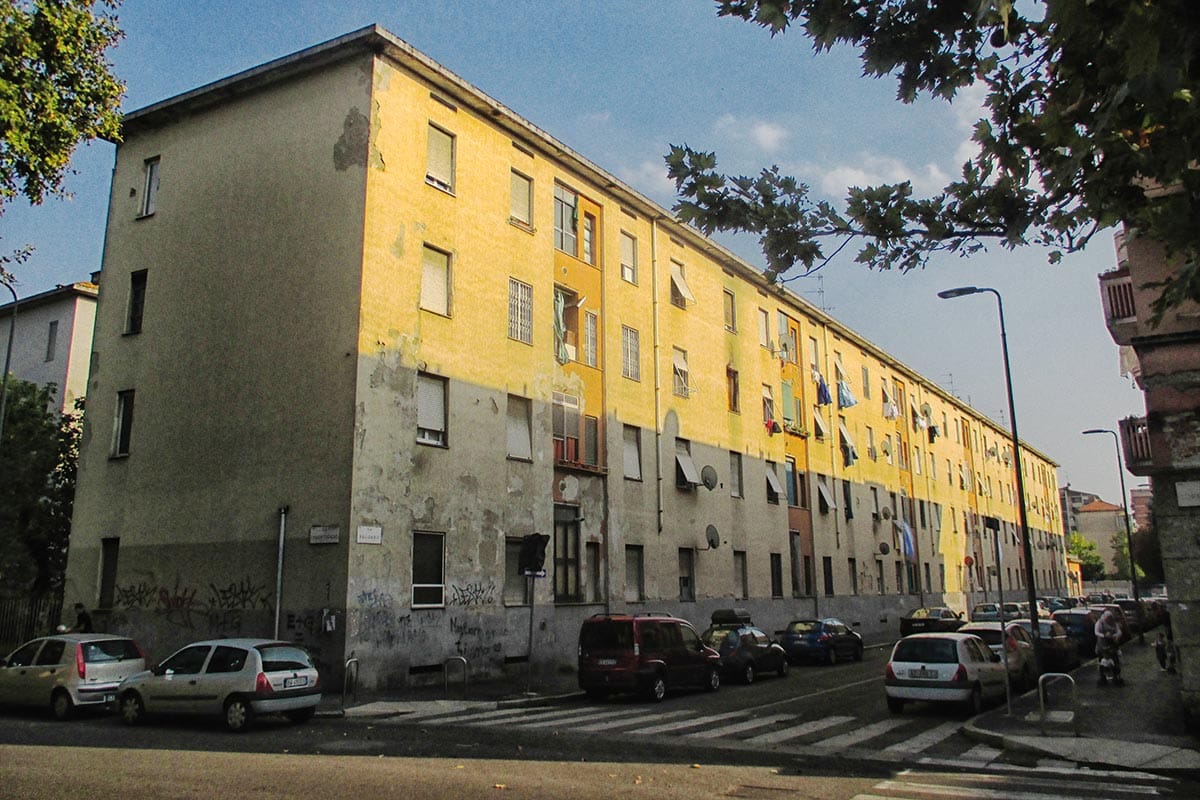 Il Giambellino è nato negli anni Venti, in una Milano che parlava ancora soprattutto il dialetto, associando all’identità cittadina un’altra fortemente operaia. Le fabbriche erano soprattutto sul Naviglio Grande, a Sud del quartiere, in quella che oggi ne è diventata la parte più chic e valorizzata tra via Savona e via Tortona. Il tutto delimitato dalla ferrovia, costruita apposta per le industrie. Quasi sempre ci si riferisce al quartiere in modo generico come “Giambellino,” ma i quartieri popolari in realtà sono due: il Giambellino vecchio, vicino a piazza Frattini, e quello nuovo, che Aler chiama Lorenteggio. Entrambi i lotti di case popolari sono suoi, e sono entrambi malmessi.