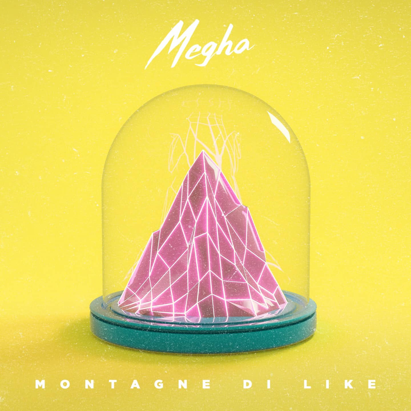 “Gli oggetti che stiamo rappresentando nelle copertine di questi singoli sono l’arredamento del piccolo appartamento di Megha.” È uno sguardo dentro la vita futuribile dell’artista. “Abbiamo deciso di rappresentare degli “oggetti paradossali,” ironici nello stesso modo in cui sono ironiche le sonorità di Megha,” racconta Gino Tremila. “Abbiamo scelto di rappresentare la montagna di like del primo singolo dentro una campana di vetro, ridimensionata, per comunicare istantaneamente come sia una montagna di nulla. Entrambe le copertine le abbiamo realizzate in collaborazione con l’artista 3D Giusy Amoroso.”