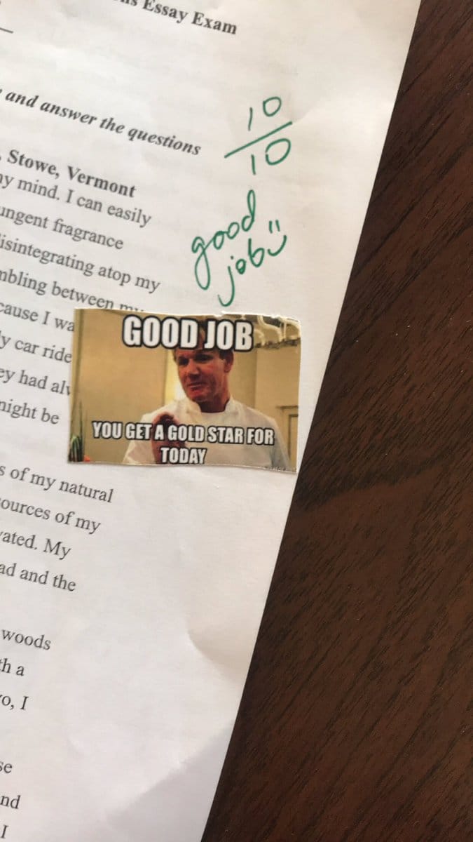 Questa insegnante di inglese corregge i compiti appiccicando sticker con dei meme per tenere attenti i propri studenti. (Twitter Moments)