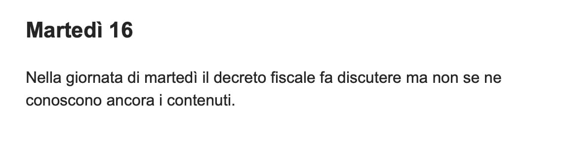 Non è chiaro comunque a cosa potrebbe servire una nuova riunione del Cdm, dato che la Lega è compatta a insistere che il testo non si tocca. Ricordiamolo: questa vicenda non dimostra soltanto la totale incompetenza — o la totale ipocrisia — del Movimento 5 Stelle, ma anche la continuità della Lega con il peggior centrodestra del nostro paese in materia fiscale. (Rai News)