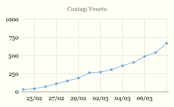 Proprio per evitare ulteriori isterismi e contraccolpi negativi sull’economia italiana dovremmo concentrarci sui dati e leggerli per quello che sono. Il principale focolaio del contagio, in Italia, è ancora quello del basso lodigiano e la situazione più pesante si registra ovviamente in Lombardia, che è la regione che riporta il numero maggiore di casi di contagio da nuovo coronavirus e che al momento è più stressata dal problema. Anche in Veneto si stanno registrando molti casi nelle ultime ore, quasi tutti localizzati nel padovano, ma sono sensibilmente meno di quelli lombardi. In tutte le altre regioni i casi confermati di contagio da nuovo coronavirus al momento sono pochissimi e, purtroppo, questo aspetto non viene sottolineato in modo adeguato dai media. Per questo abbiamo deciso di rappresentare i dati pubblicati quotidianamente dalla protezione civile — e consultabili qui — attraverso una serie di grafici che aggiorneremo ogni volta che verranno pubblicati i nuovi dati.