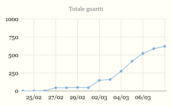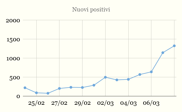 Dai dati pubblicati dalla protezione civile il numero di nuovi contagiati sembra inoltre in diminuzione. I dati della protezione civile riferiti alle ore 12 di lunedì 24 febbraio parlano di 219 nuovi contagiati. Ventiquattro ore dopo, alle 12 di martedì 25 febbraio, i nuovi contagiati sono invece 60 e oggi i dati parlano di 52 nuovi contagiati rispetto alle ventiquattro ore precedenti. Questo indica che probabilmente si sta riuscendo, almeno in parte, a contenere la diffusione del nuovo coronavirus nel nostro Paese.