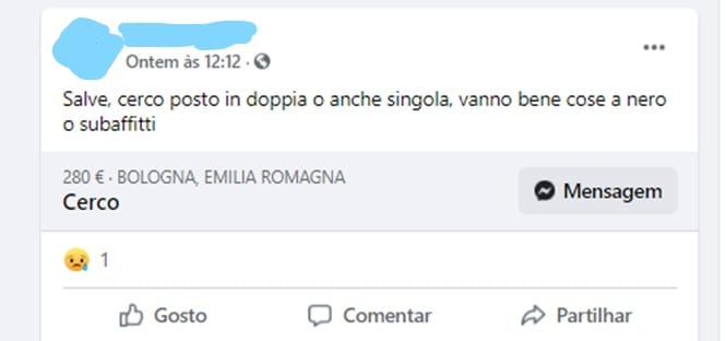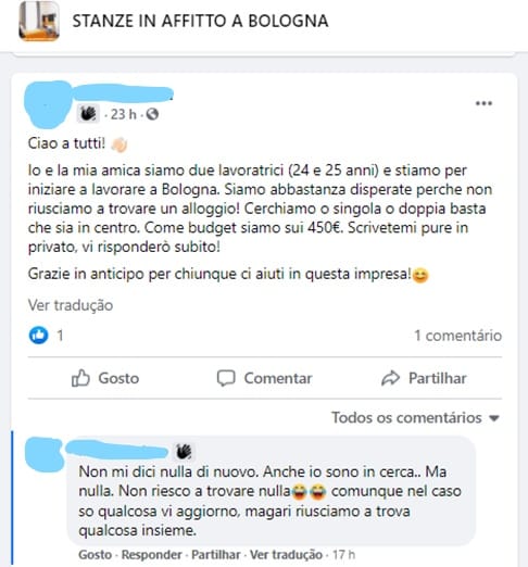 Luca Dondi, amministratore delegato della società di consulenza Nomisma, ha affermato in un’intervista recente per il quotidiano La Repubblica che, a Bologna, “gli studenti in questo momento sono quasi espulsi dal mercato immobiliare.” Ampiamente divulgata sui mezzi di comunicazione è stata la lettera della giovane lavoratrice Gaia Sallemi al sindaco Matteo Lepore e alla vicesindaca Emily Clancy, che denuncia l’aumento dei prezzi, la mancanza di condizioni di abitabilità, l’impossibilità di trovare alloggio senza garanzie dei genitori o fideiussione bancaria, e l’assenza di una vera e propria tutela contro le truffe immobiliari.
