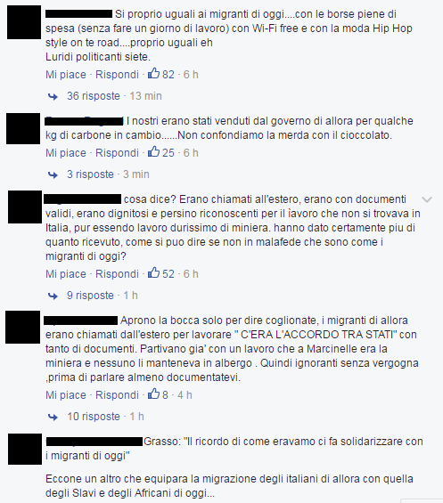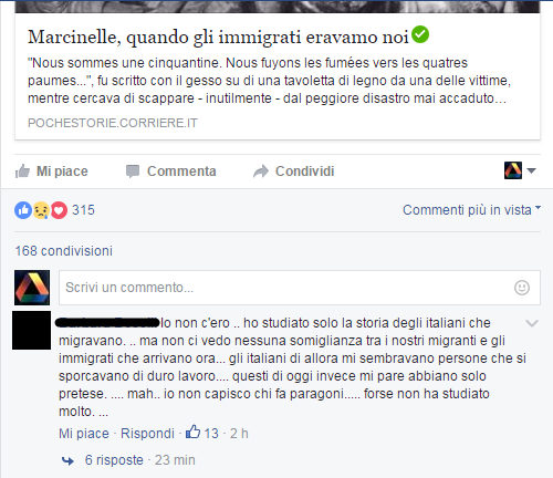 Forse, il fatto stesso di paragonare “noi” e “loro” rende più facile usare intolleranza: messo di fronte alla figurina del migrante A e del migrante B, l’utente medio preferisce celebrare il migrante A, più simile a sé. Ma così facendo è implicitamente razzista verso il migrante B. Tutto è sintetizzato in uno degli ultimi commenti: “Eravamo così diversi e buoni.”