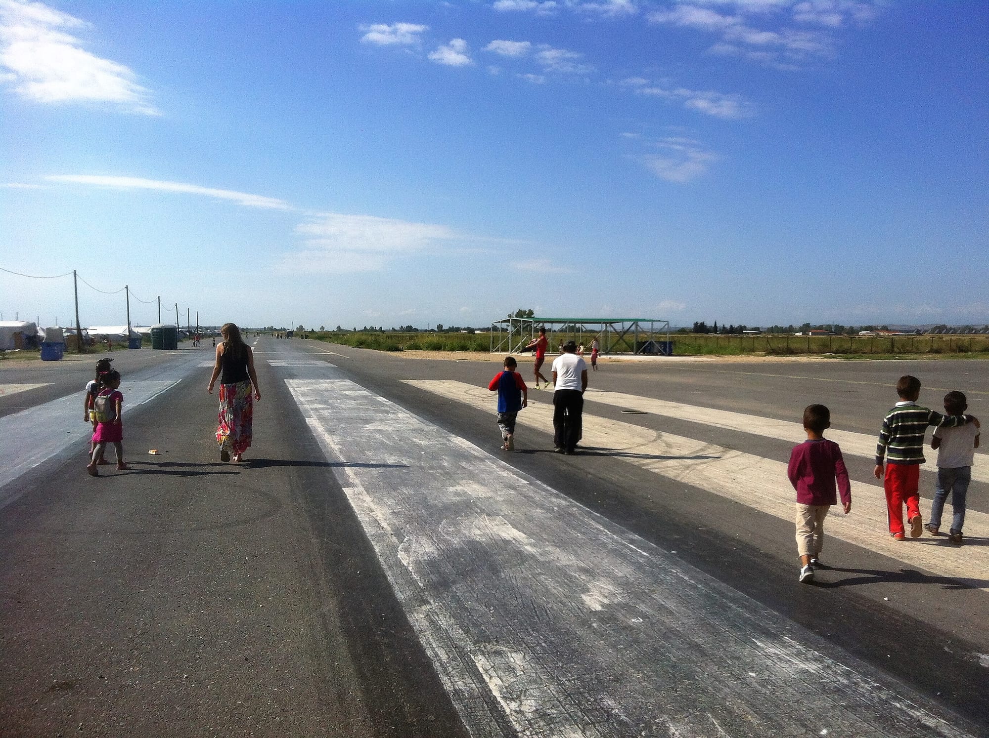 Ci spostiamo nel campo più a Sud di Nea Kavala per distribuire cioccolato ai bambini. Ad un primo impatto è un campo poco organizzato:aperto anch’esso a febbraio ha una forma a L, stretta e lunga, e sorge su quella che era una pista per aerei militari. Molti, soprattutto uomini, si precipitano sui volontari con in braccio i più piccoli. Non tutti parlano inglese, ma alla domanda “what is your final destination?” spesso capita di sentirsi rispondere “everywhere”. Molti di loro sono in Europa ormai da mesi, ma la situazione in Grecia è critica per via della chiusura del confine con la Macedonia e degli altri Paesi balcanici. Il ricollocamento interno dopo la chiusura del campo Idomeni – che aveva ospitato fino a 15mila persone – ha distribuito i migranti in nuovi campi, ricavati da aree dove sorgevano vecchi magazzini.