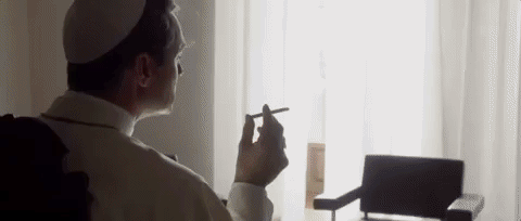 Il Nostro ha sempre trovato l’occasione di mettere tra le labbra dei suoi personaggi una buona sigaretta, questa volta però la cosa è un po’ più complessa: il suo protagonista è il papa. Una metafora del contrasto tra bene e male, good & evil.