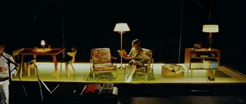In italiano chiamato sguardo in camera è un’altra tecnica spesso usata dal regista. Tutti ci ricordiamo lo sguardo di Toni Servillo durante i balli di gruppo.