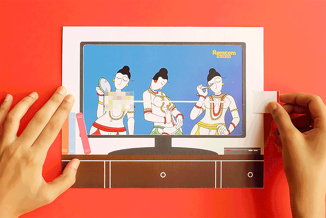Le illustrazioni, finalizzate a rappresentare uno specifico episodio di cronaca, si ispirano alle sculture dei templi di Kahajuraho, un gruppo di santuari induisti, e in misura minore giainisti, noti per le sculture erotiche che li adornano.