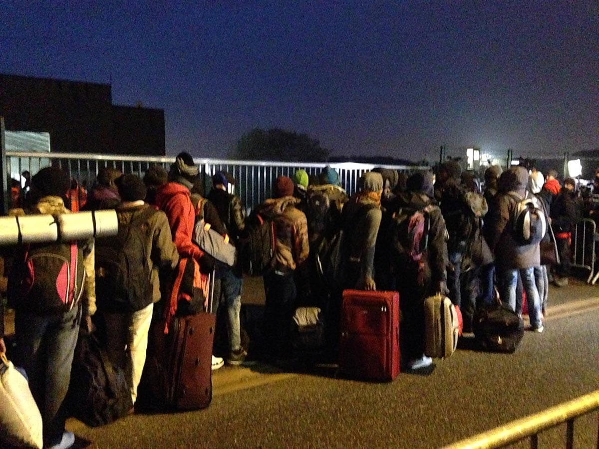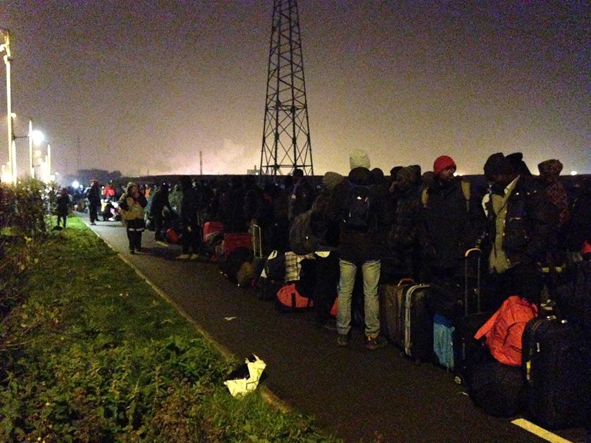 CALAIS — Lunedì 24 ottobre, alle 6 del mattino, gli eritrei sono i primi a lasciare spontaneamente la “Giungla,” a piccoli gruppi, trasportando i propri bagagli lungo il viale che conduce al centro di smistamento allestito dalla prefettura. Inizia così il primo giorno di sgombero del campo di migranti di Calais: un piano complesso, annunciato qualche settimana fa dal governo francese, che prevede il trasferimento in pullman di tutti i “residenti” verso i CAO (Centres d’Accueil et d’Orientation, sparsi sul territorio francese, dove verrà offerta accoglienza, assistenza medica e psicologica) e la demolizione delle strutture del campo.