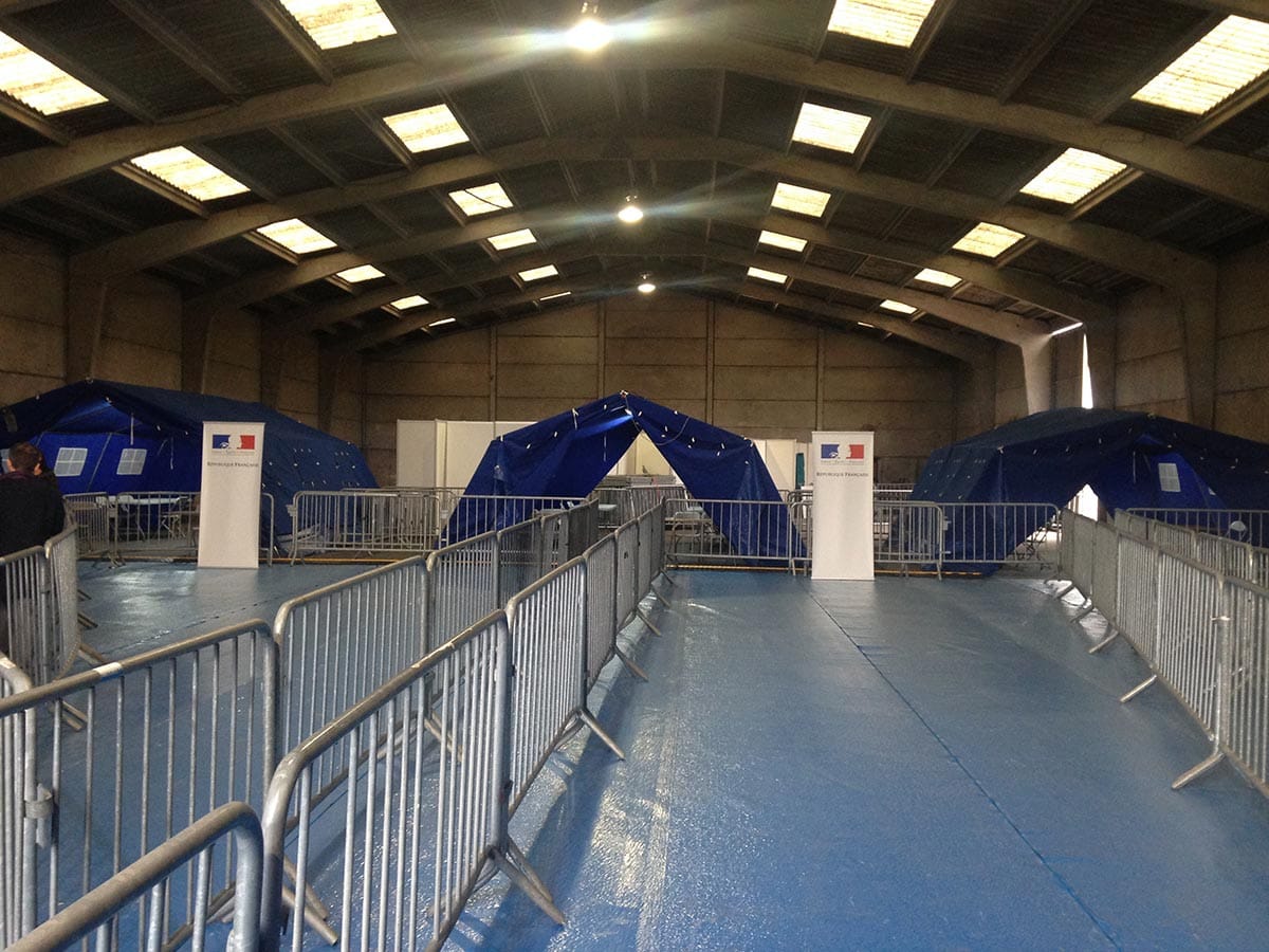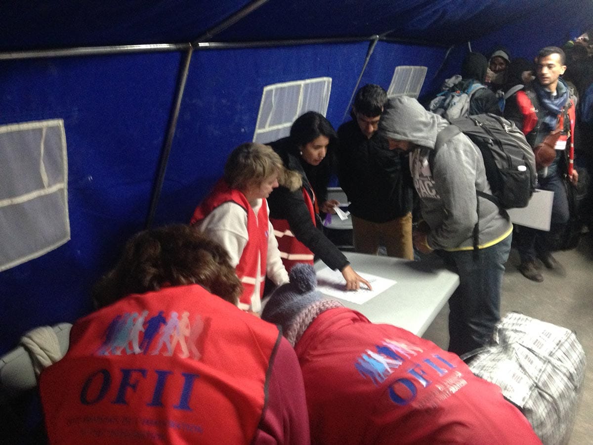 Situato a meno di un chilometro dal campo, tra le ciminiere dei complessi industriali, il centro di smistamento allestito dal Ministero dell’Interno è collocato entro un grande magazzino e gestito dagli operatori della protezione civile. Lì i migranti vengono suddivisi in categorie (maschi adulti soli, famiglie, soggetti vulnerabili e minori non accompagnati) e accompagnati in differenti settori, dove verrà offerta loro la scelta tra due diverse destinazioni alla volta e verrà effettuata una rapida registrazione che nulla ha a che fare con le procedure previste dall’accordo di Dublino, in attesa del trasferimento in pullman. Nella sezione dei minori sono presenti agenti della polizia britannica, per prendere in carico i giovani ammessi all’asilo nel Regno Unito.