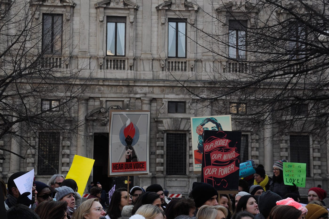 La Women’s March dopo aver attraversato Washington, ha toccato capitali e metropoli di tutto il mondo — e anche a Milano, in piazza della Scala, le donne si sono riunite per manifestare contro l’inaugurazione di Donald Trump.