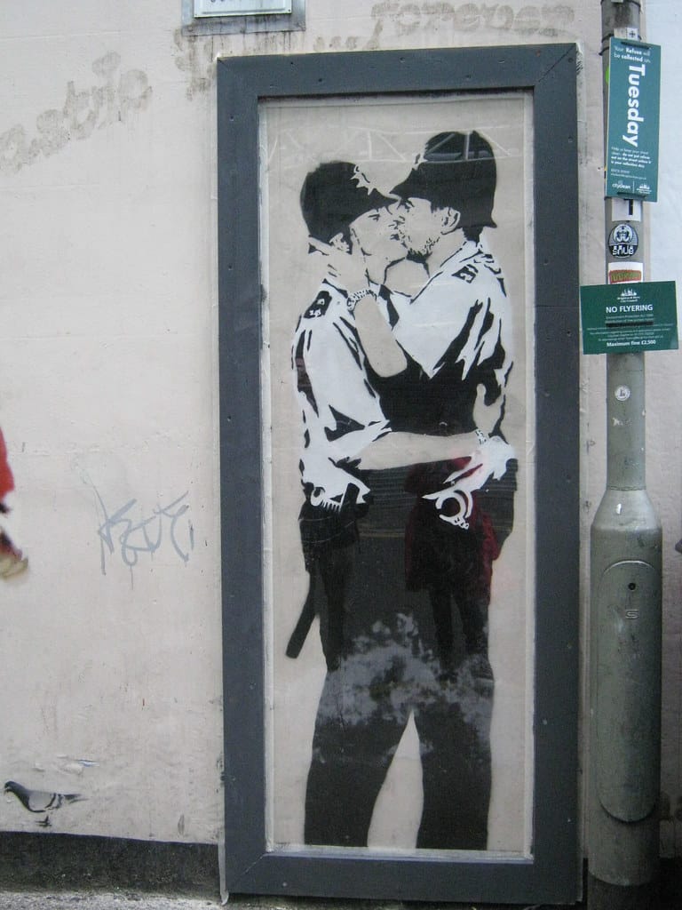 Saving Banksy inquadra il problema della mercificazione della street art facendone una questione morale. “Sborsare centinaia di migliaia di dollari per un dipinto che è nato per stare all’aperto, e il cui scopo è denunciare l’avidità del capitalismo, dà un significato tutto nuovo alla parola ‘contraddizione’”, così commenta in un’intervista il collezionista e produttore del documentario Brian Greif. I murales vengono sradicati dal loro habitat naturale, i muri delle città. Ci sono mercanti d’arte, galleristi come Stephan Keszler, che sfruttano a proprio vantaggio l’ethos sovversivo degli street artist. I murales vengono rimossi e venduti al miglior offerente, il tutto senza il consenso dell’artista, che non può far leva sulla proprietà di un’opera prodotta illegalmente. Quando Kissing Coppers viene venduto a 477 mila dollari, è un po’ come assistere alla decapitazione di Luther-Blisset.