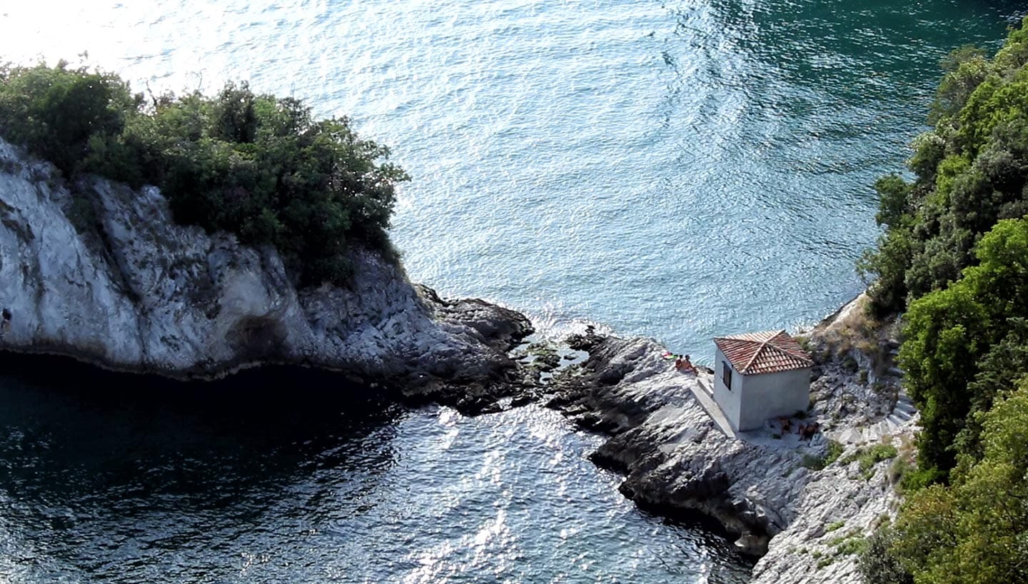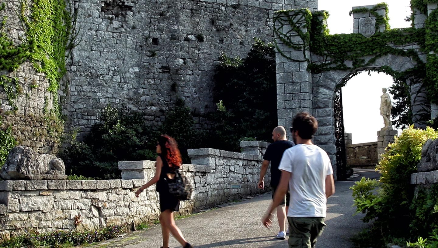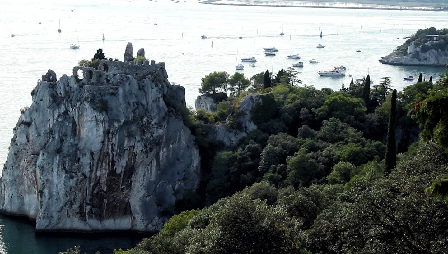 Da Brescia abbiamo preso la strada per i Balcani, una tirata di macchina che ci ha costretti a una pausa pranzo per ricaricare le energie. Ci siamo fermati a Duino, una città sul mare vicino Trieste. Qui abbiamo visitato il castello, un posto di strani incontri della Storia, che parla di Freud, Rilke, Marie Bonaparte e della Prima guerra mondiale. Ai suoi piedi c’è un bunker scavato nella roccia carsica e nella torre del castello uno strano museo sulle borracce da guerra, dal Giappone alla Russia.