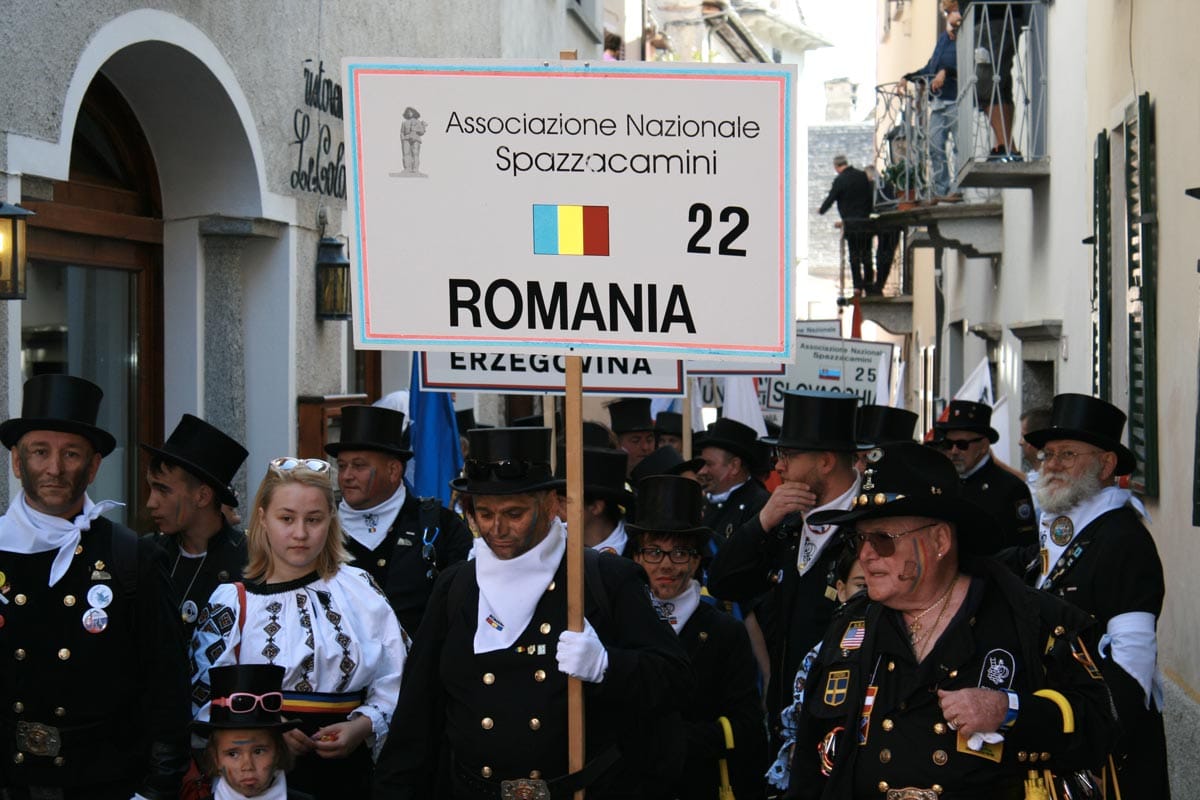 Al termine della sfilata abbiamo raggiunto in Piazza Risorgimento, di fronte all’antica sede del pretore della Valle Vigezzo, Claudio Cottini, sindaco di Santa Maria Maggiore. “La popolazione accoglie molto bene questo evento” – sottolinea – “il raduno è una manifestazione che è tutto fuorché folklore. La storia del mestiere dello spazzacamino è legata allo sfruttamento minorile dei piccoli spazzacamini che un tempo abbandonavano le case togliendo un componente alle famiglie, che dovevano faticare per poter dar loro sostentamento. Oggi la valle accoglie questa manifestazione molto bene perchè è diventata un’occasione di festa tra popoli e genti che in questi giorni si incontrano e si divertono.” Alla nostra domanda sul perché un giovane milanese debba spingersi fino a qui per assistere alla sfilata, Cottini esorta tutti a “ vivere esperienze culturali di questo tipo, perché non c’è futuro se non si guarda un po’ alle nostre spalle. Senza la lacrimuccia, ma solo capendo che queste cose sono capitate e hanno contribuito alla nostra modernità. Un altro motivo per cui un ragazzo dovrebbe venire e che penso sia una cifra importante dell’evento” – prosegue Cottini – “è che qui si può toccare con mano l’unità dei popoli, si assiste a persone che sfilano insieme restando unite e che rappresentano un segno dei tempi contro i totalitarismi e contro tutte le cose orribili che stanno accadendo in questo periodo.”