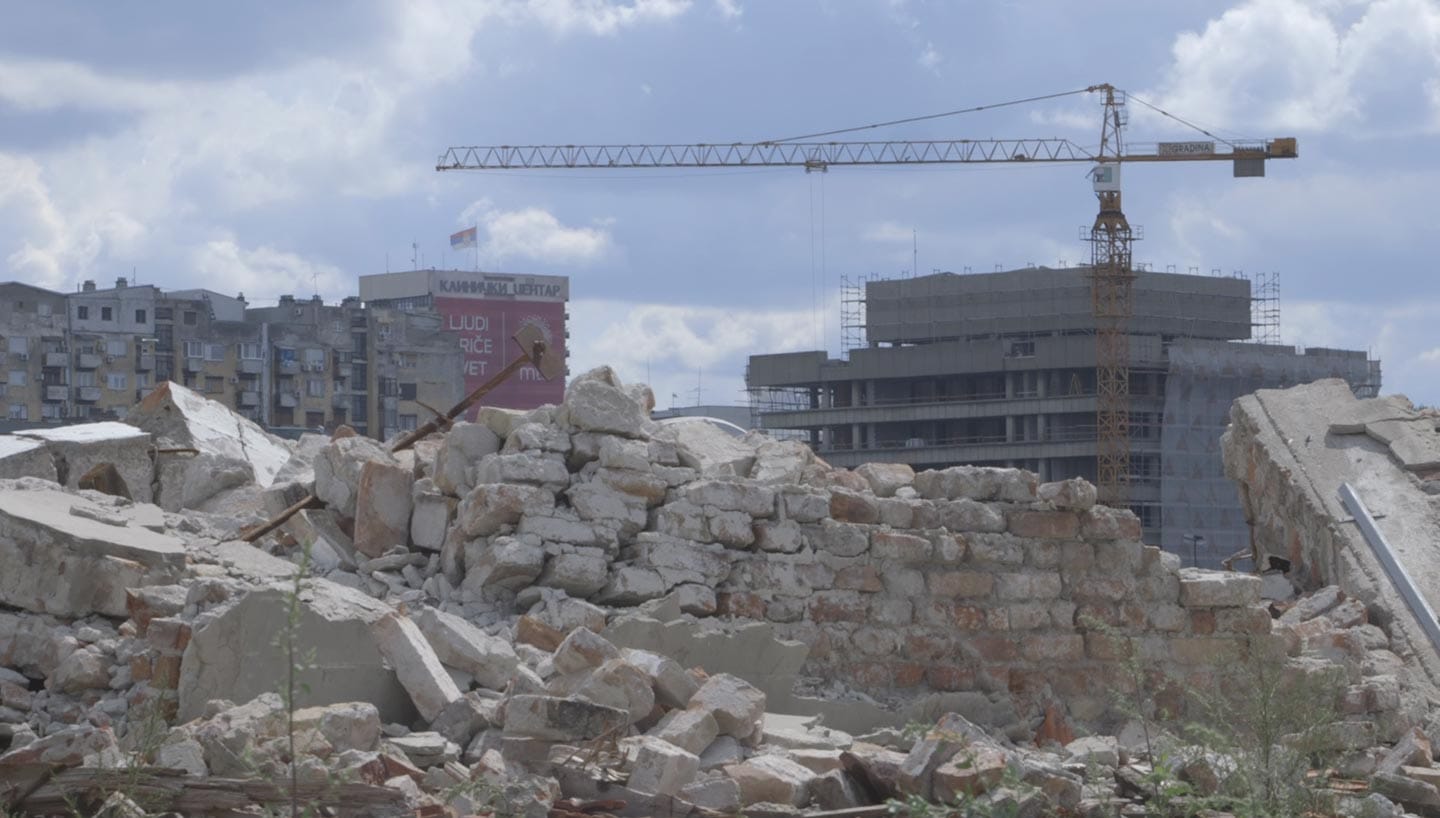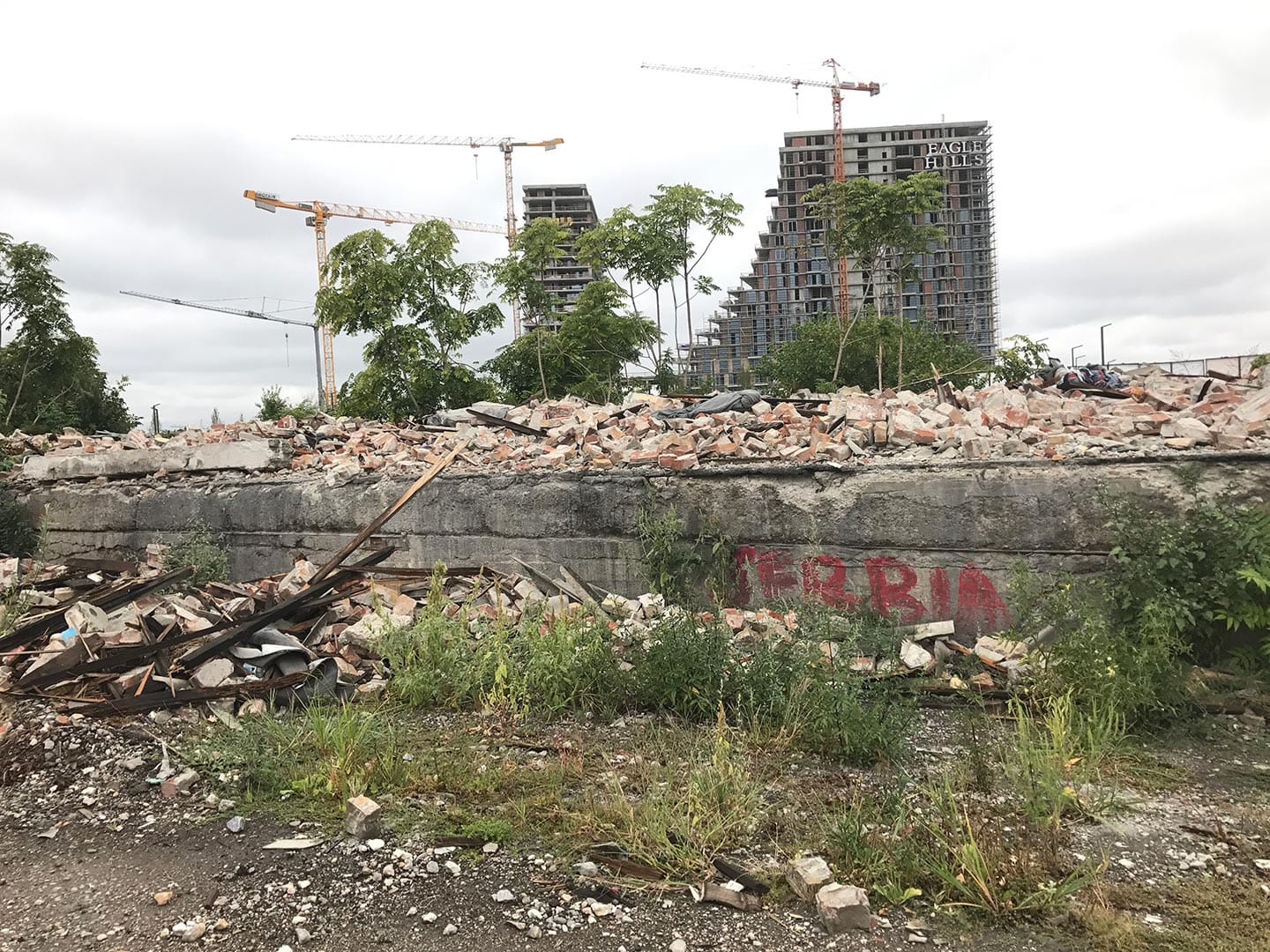 “Qui c’era la cucina, era a due piani, e al piano di sopra c’era il deposito dell’acqua. Dopo la cucina c’erano le docce che avevano costruito alcuni volontari britannici. E qui invece c’era un giardino bellissimo, dove le persone giocavano a carte o a scacchi”. Mireia ci spiega che quella di costruire un accampamento nel cuore della città era stata una decisione forte e simbolica. La demolizione, oltre a essere un tentativo di mettere la polvere sotto al tappeto, è rientrata all’interno di un progetto urbanistico di riqualificazione dell’area a ridosso del fiume Sava: il Belgrad Waterfront, un piano per costruire edifici di lusso con soldi provenienti direttamente dagli Emirati Arabi.