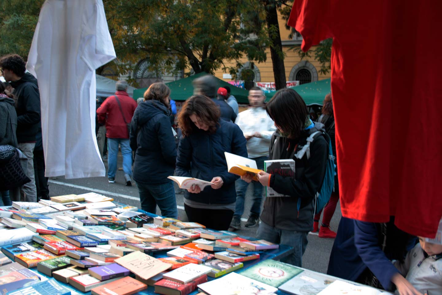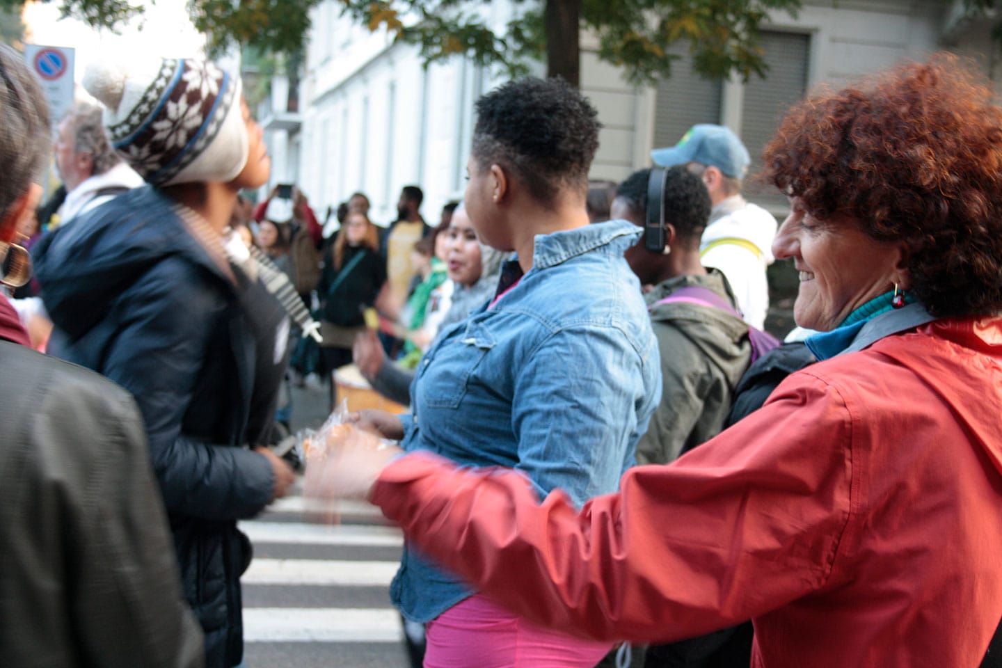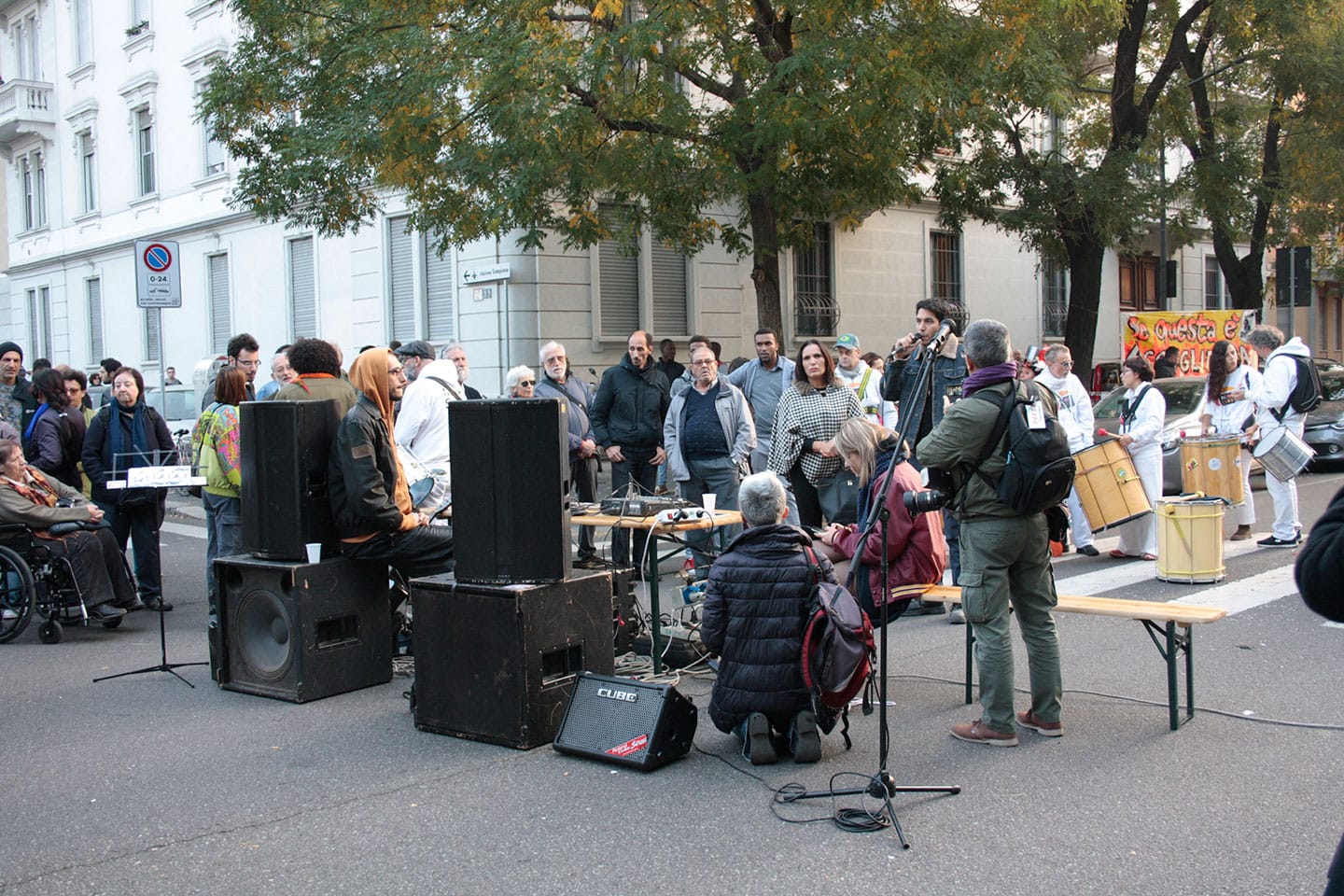Tra questi, hanno portato la propria testimonianza i rappresentanti dell’associazione tunisina El Massir e dell’algerino Collectif de familles des Harraga d’Annaba, che si battono per giustizia e verità sui migranti morti, dispersi o vittime di scomparsa forzata — i nuovi desaparecidos. Ma ha preso la parola anche una realtà come Non Una Di Meno, coordinamento femminista impegnato contro la violenza di genere in tutte le sue forme. E poi musica — con la Banda degli ottoni e i percussionisti dei Mitoka Samba — libri usati e una raccolta di beni di prima necessità per i migranti.