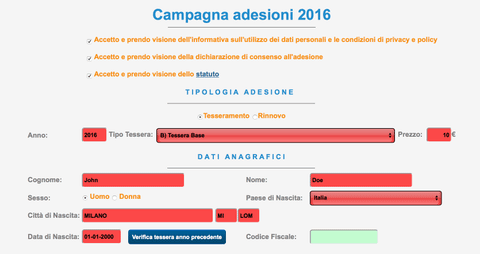 Cose belle: Se cliccate su tesseramento online finite su una web app completamente aliena al resto del sito dove non è possibile tesserarsi per anni successivi al 2016 e apparentemente mancante di intere sezioni. La nostra cosa preferita, però, è come scompaiono i popup quando si conferma di aver letto le informative: