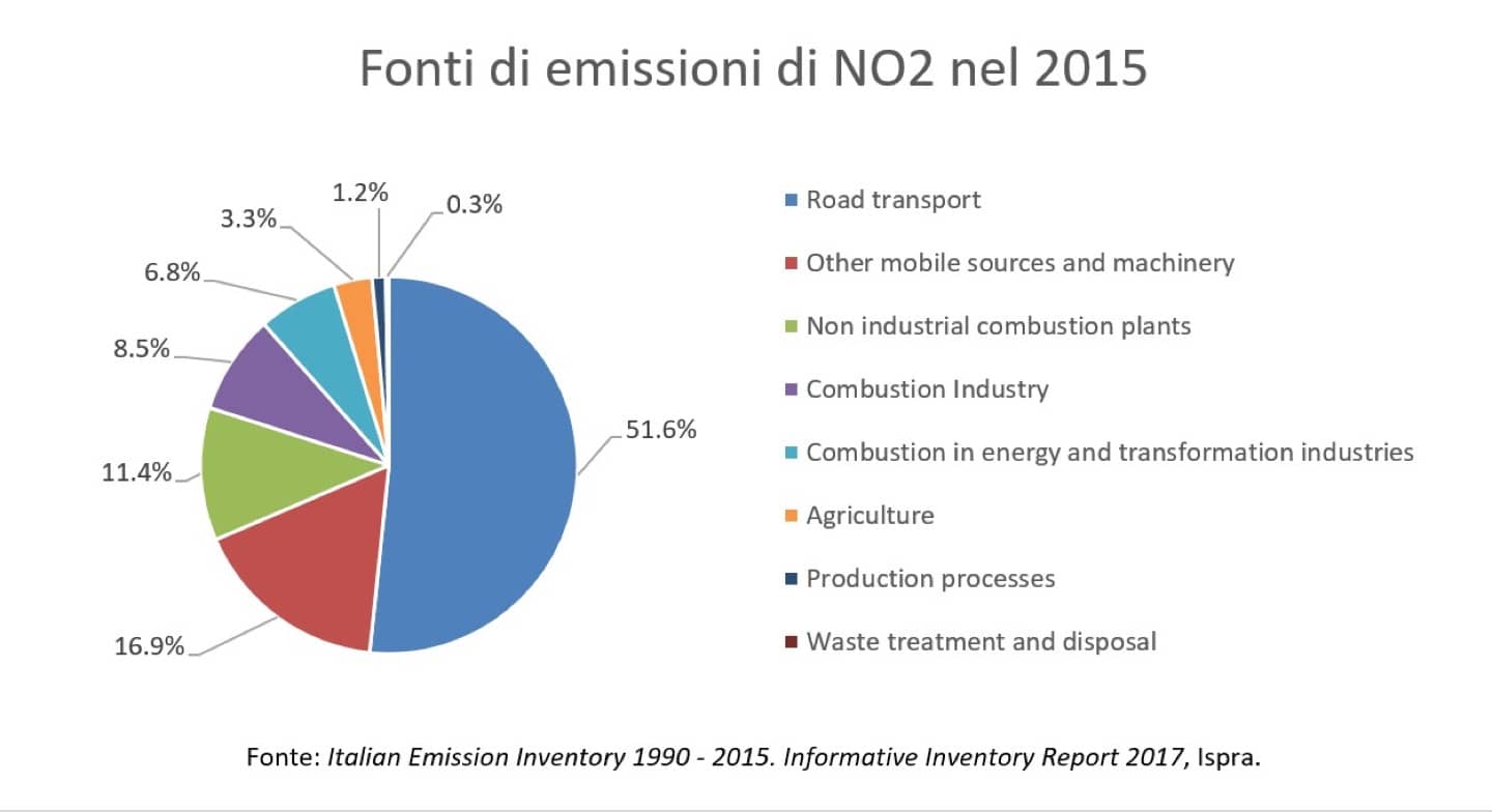 “Il biossido di azoto ha origine soprattutto dai motori diesel, che a Milano rappresentano circa il 50÷60% di tutti i veicoli. Poco importa che siano euro 4, 5 o 6, perché diversi studi hanno dimostrato che anche i motori di nuova generazione emettono delle quantità di NO2 comunque dannose per la salute umana, 4 o 5 volte superiori la soglia di tolleranza.”