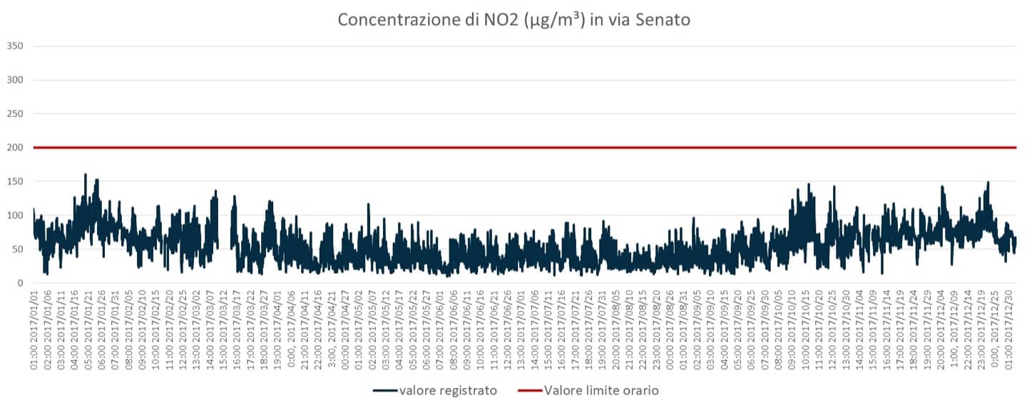 Eppure l’agenzia regionale ARPA Lombardia già dispone dei valori di biossido di azoto a Milano.