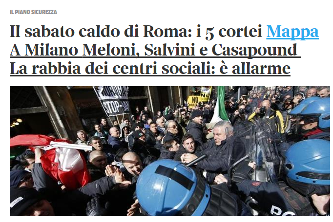 A Milano ci saranno tre comizi neo-fascisti nel raggio di pochi chilometri, ma ovviamente l’allarme è dato dalla “rabbia” dei centri sociali: