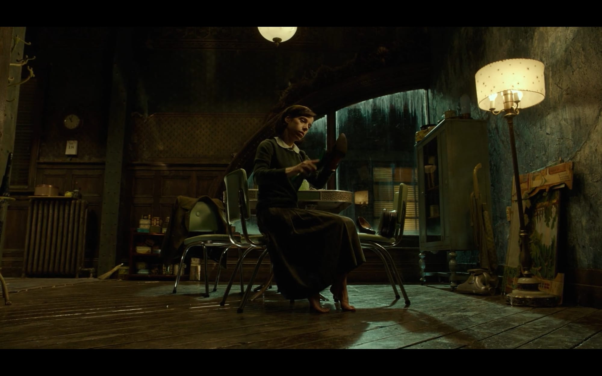 La sequenza iniziale è quello che in gergo si definisce un “ghost,” una scena che introduce il tema del film prima ancora dei titoli di testa, prima che la storia possa partire. Subito dopo, come da manuale, i primi minuti svelano il protagonista e il suo mondo ordinario. Ed ecco subito un elemento distante dalla maggior parte di noi: la protagonista è muta. Stiamo per esplorare un mondo fluttuante, acquatico, e lo faremo da un punto di vista particolare. È tutto molto strano e affascinante.Dopo una ventina di minuti, facciamo la conoscenza del “mostro.” E ci sentiamo un po’ come lui, la testa a pelo d’acqua, con un misto di curiosità e diffidenza che anticipano l’incontro con “l’altro.”