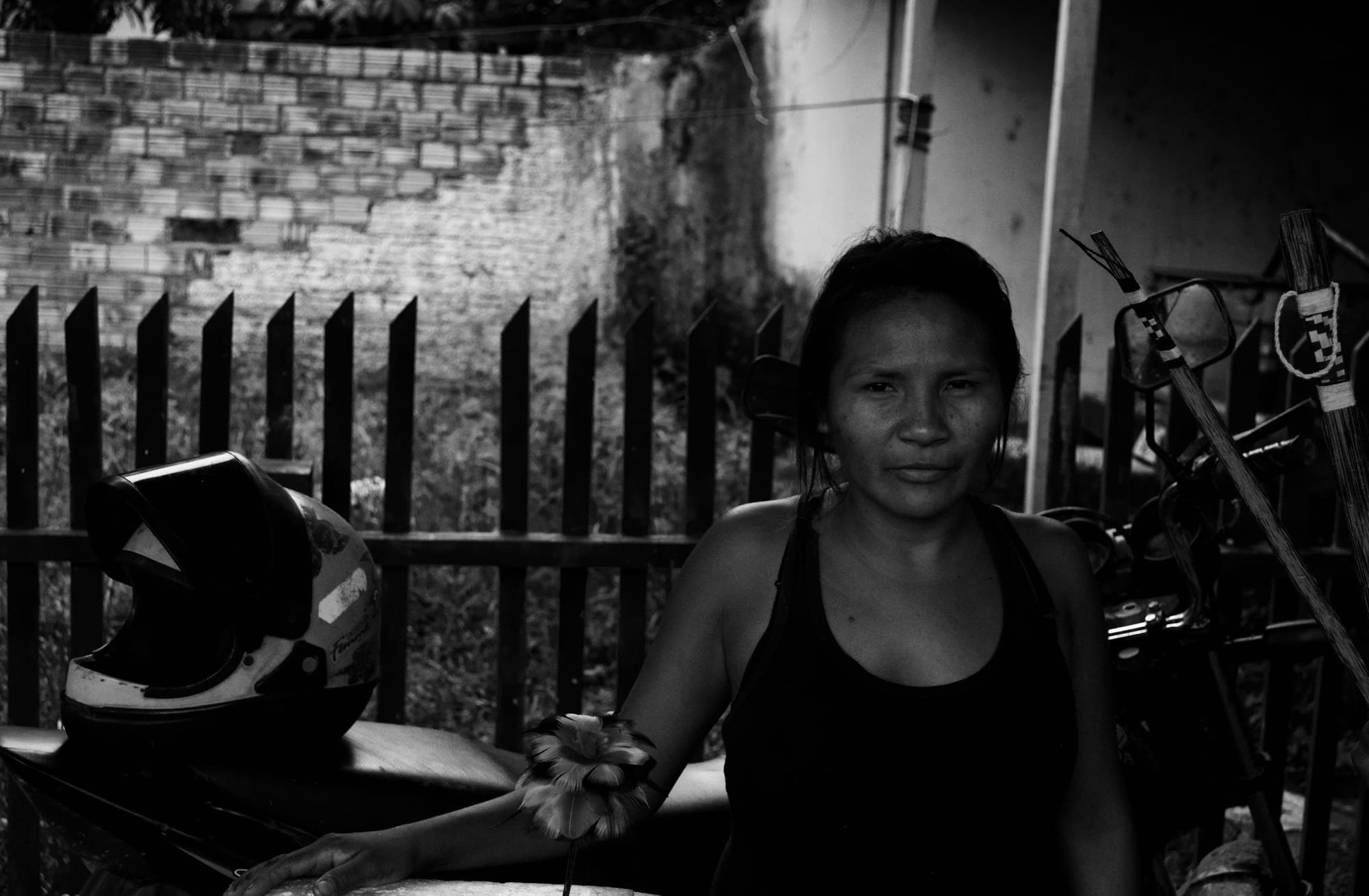 In un sottotetto un gruppo di indios è impegnato a cucire orecchini e intagliare la punta legnosa di alcune frecce che venderanno al mercato dell’artigianato vicino alla vecchia stazione porto-velhense di una ferrovia fantasma. Nella stradina affianco, un’india cammina con un uomo. La si vede spesso perché tra tutte è quella più riconoscibile: indossa degli short attillati e ha i capelli tinti di un giallo aranciato. È sempre in compagnia di uomini diversi, ma nessuno degli altri indigeni accenna a lei.