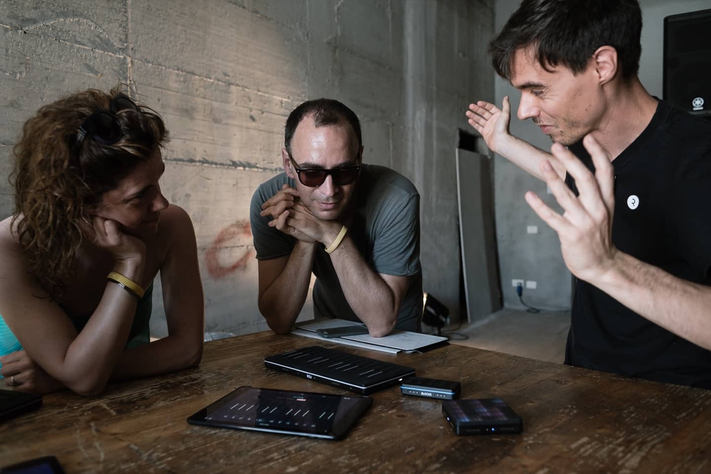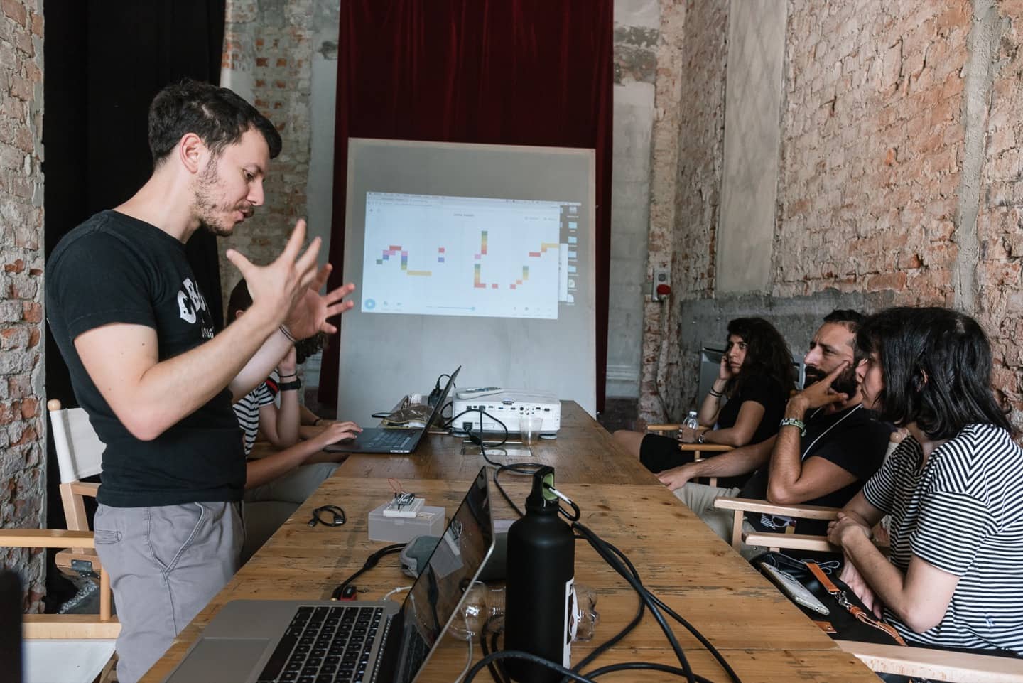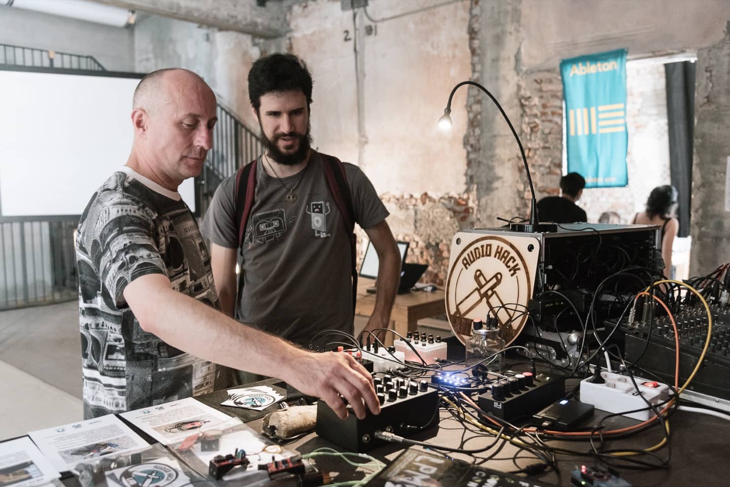 Nel corso del workshop, della durata di tutta la giornata, era possibile accedere alla Sonic Arena, una demo area in cui era possibile esplorare e sperimentare strumenti di sound & visual production insieme ai creatori e gli sviluppatori, con prodotti di Otolab, Audio HackLab, Calembour, Cameranebbia e ROLI Instruments, che per l’occasione ha portato la Seabord Block, versione economica, portatile e modulabile della decisamente più costosa e ingombrante Seabord, linea estremamente innovativa di tastiere definita — a ragione — the Future of the Keyboard. Nella sala accanto Luca Mucci, trainer certificato Ableton, gestiva diverse workstation dove era possibile, a turni, provare il nuovo Ableton Live 10 per la gestione di tracce sia tramite PUSH che software – mentre in Play the Internet l’interaction designer Alessandro Contini spiegava come produrre attraverso browser.