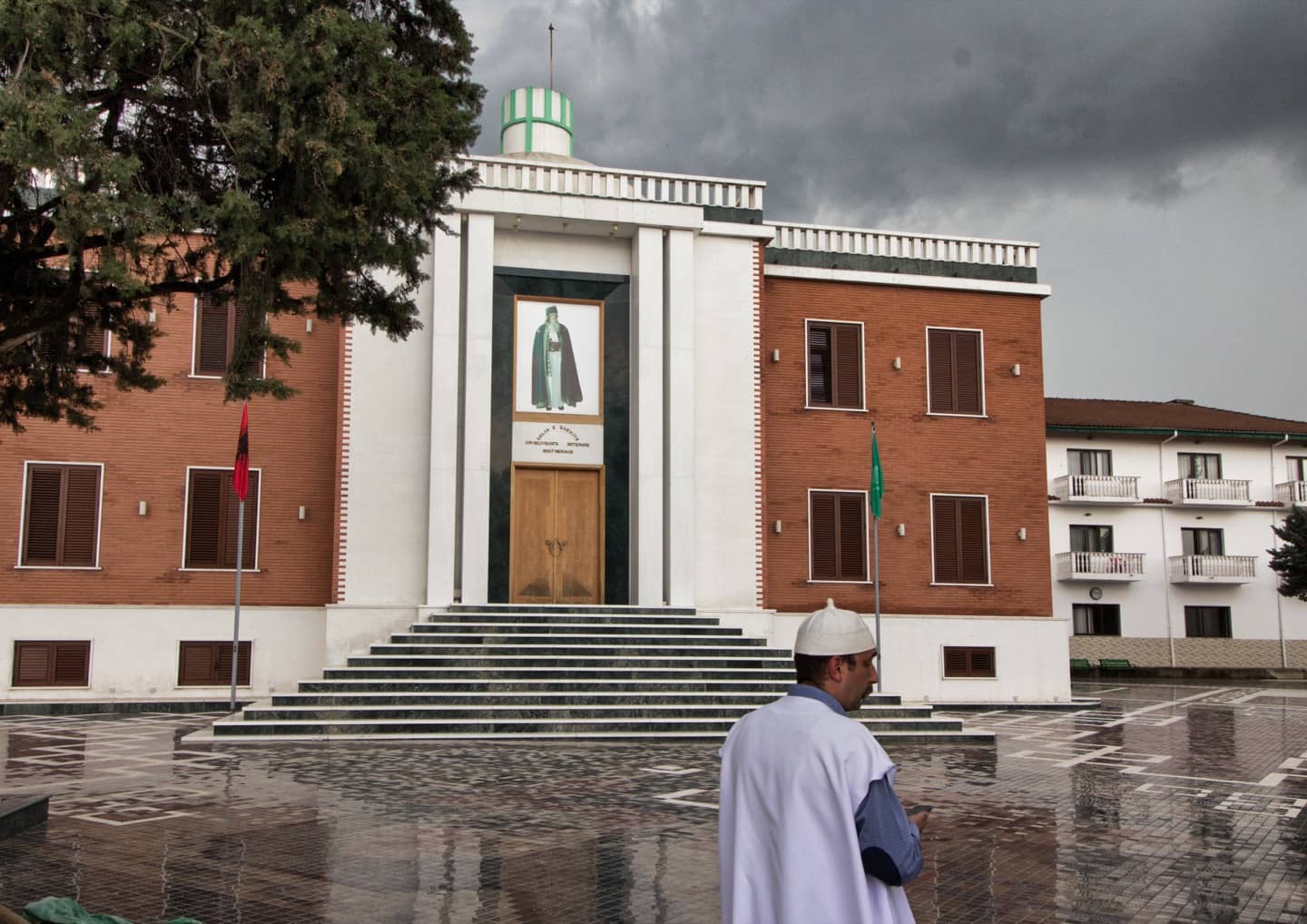 Guardandone la skyline dall’alto, al tramonto, dopo un temporale estivo, con gli uccelli che tornano al nido costruito nell’incavo di una ciminiera e le montagne sullo sfondo a incorniciare il paesaggio, Tirana infonde comunque un senso di pace. Un sentimento panico che si amplifica girandosi di 180° per venire accecati dalla sontuosità della teqqe del Centro Mondiale dei Bektashi, un ordine religioso islamico dalle tinte mistiche. La teqqe è un edificio imponente, un’astronave dalle vetrate di vetro e le colonne color cobalto, la cupola scintillante la fa assomigliare vagamente ad una gigantesca biscottiera. Come siamo finiti qui su questa collina?