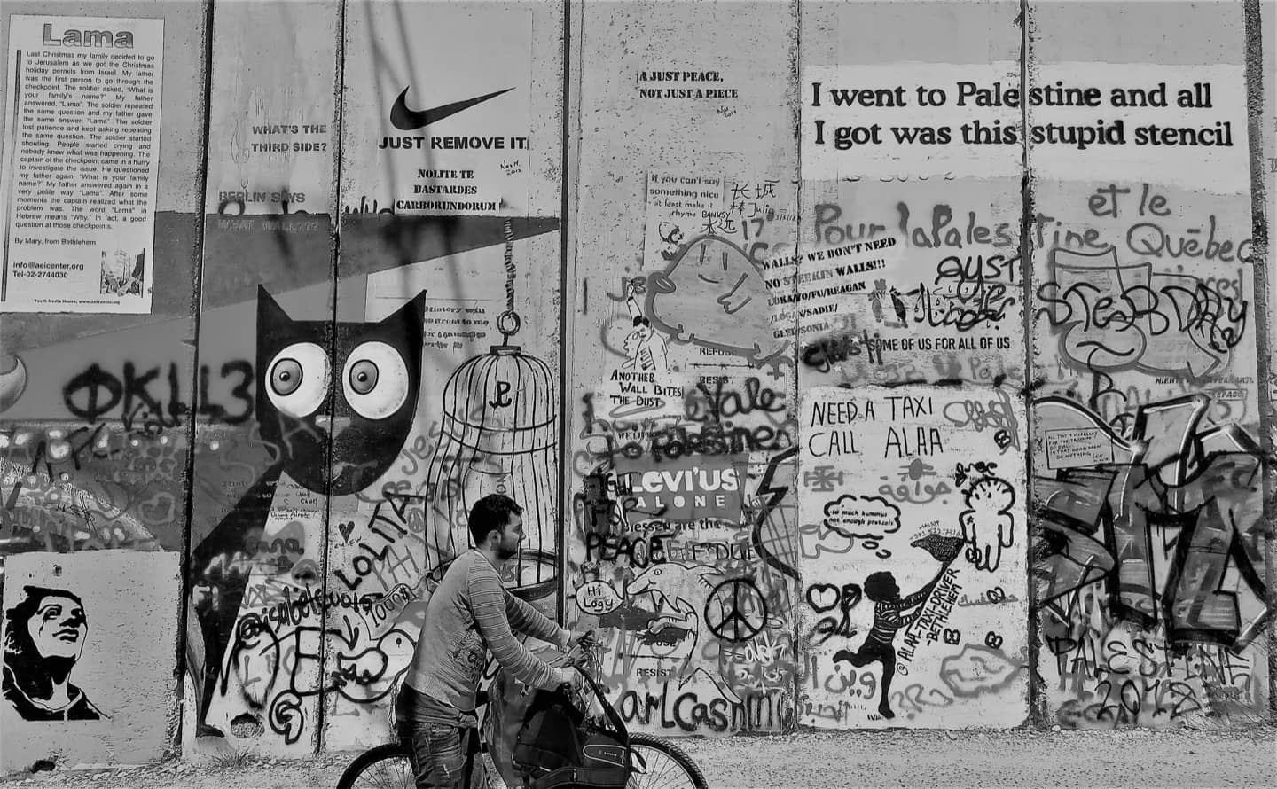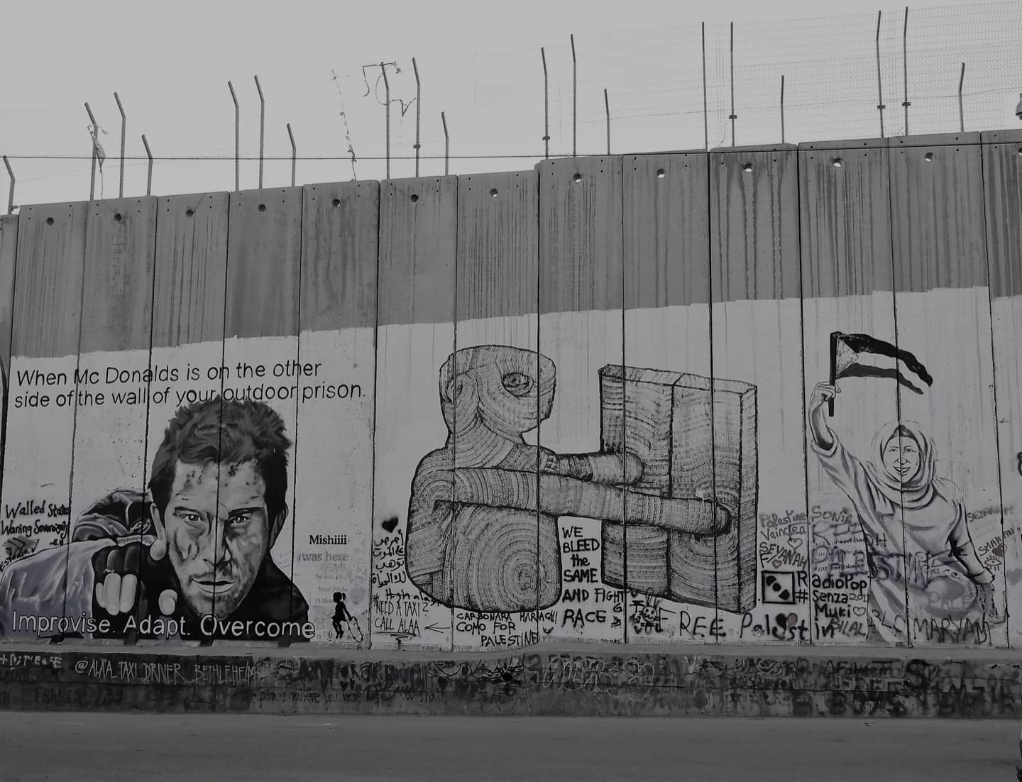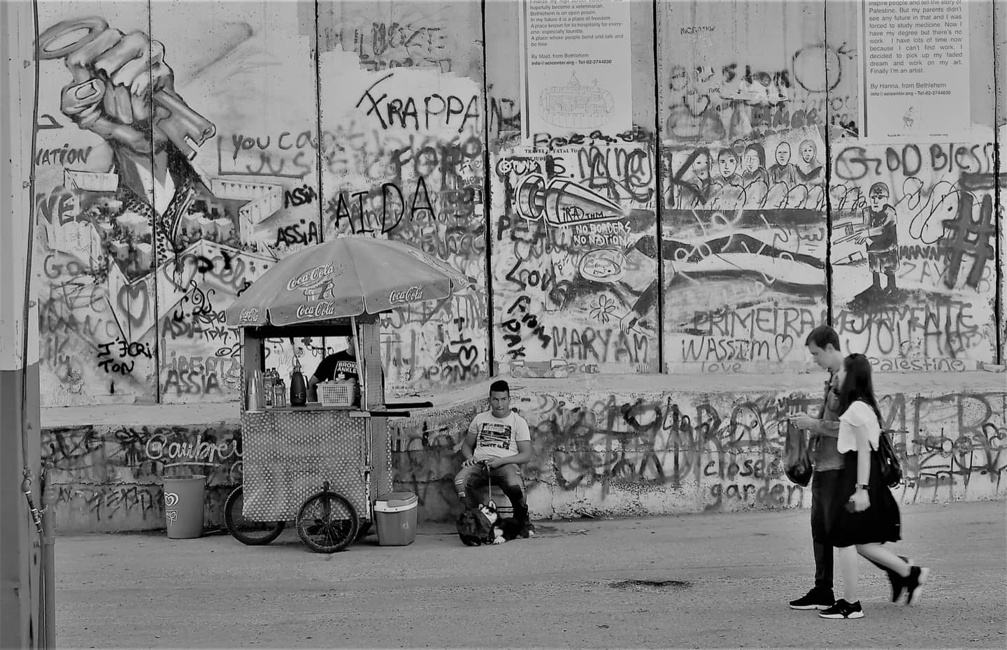 Lì, gli insediamenti israeliani sono sparsi per la cosiddetta Area C, e i confini non sono netti — tecnicamente, gli insediamenti sono considerati illegali dalla comunità internazionale, ma di fatto continuano ad esistere, protetti dal 2002 dal muro di separazione costruito da Israele. Se fuori dalle città il “muro” è in realtà una recinzione con del filo spinato, dentro i centri abitati come Betlemme si trasforma in un gigante che arriva fino agli otto metri.