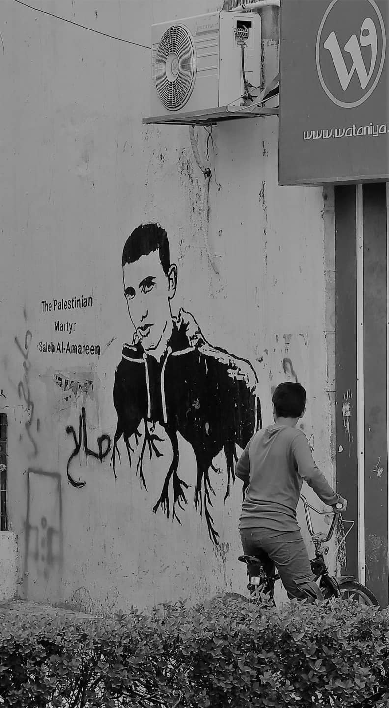 Mathieu è un artista francese che vive a Londra. I suoi disegni sono un commento tagliente sulla vita moderna, critici del capitalismo e impegnati sul fronte politico. In Palestina, però, non era andato in veste di artista: il piano iniziale era di andare a Gaza ad aiutare con la raccolta delle olive, il cui olio è una delle principali fonti di reddito della popolazione locale. A Londra, Mathieu fa parte della Palestine Solidarity Campaign, un’organizzazione che promuove la causa palestinese, che lo aveva messo in contatto con chi lo avrebbe ospitato a Gaza. Ma il giorno del suo arrivo a Tel Aviv è stato anche il primo della serie di proteste iniziate a fine marzo e culminate il giorno della Nakba, il 15 maggio, e che sono costate la vita a 123 palestinesi: una volta capito che entrare a Gaza sarebbe stato impossibile, Mathieu è partito per gli altri territori palestinesi — la Cisgiordania.
