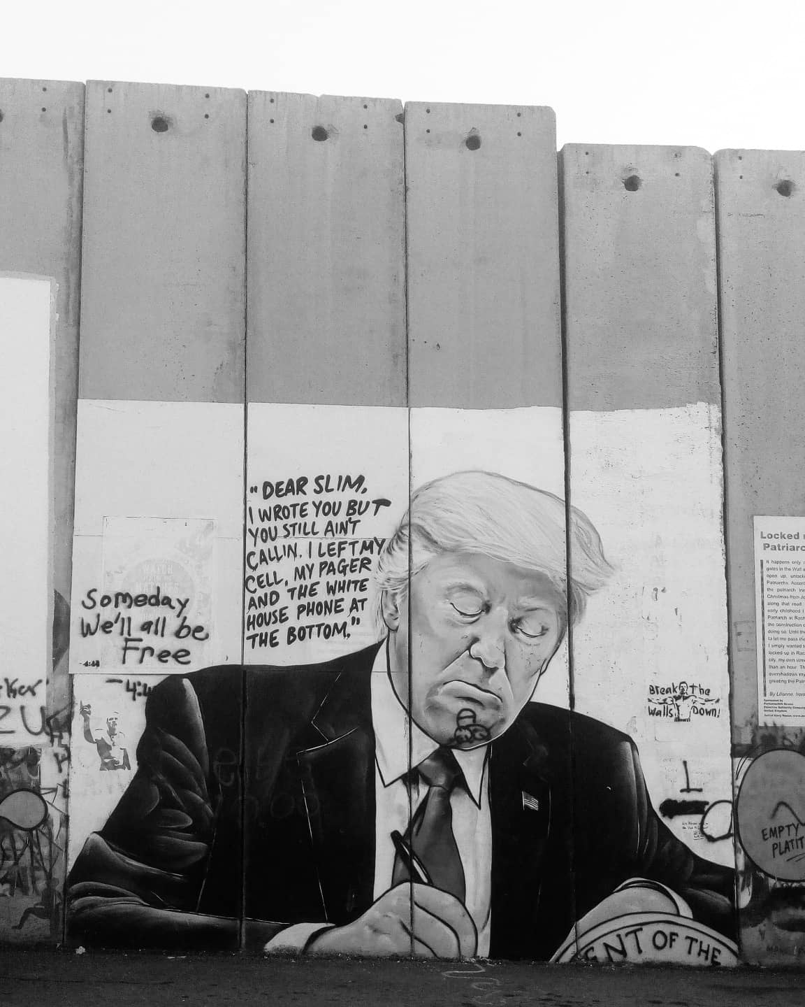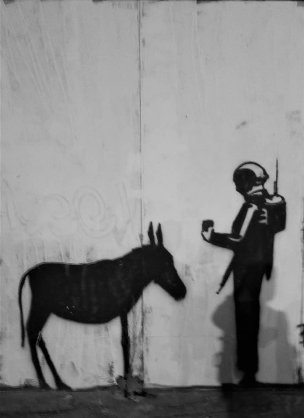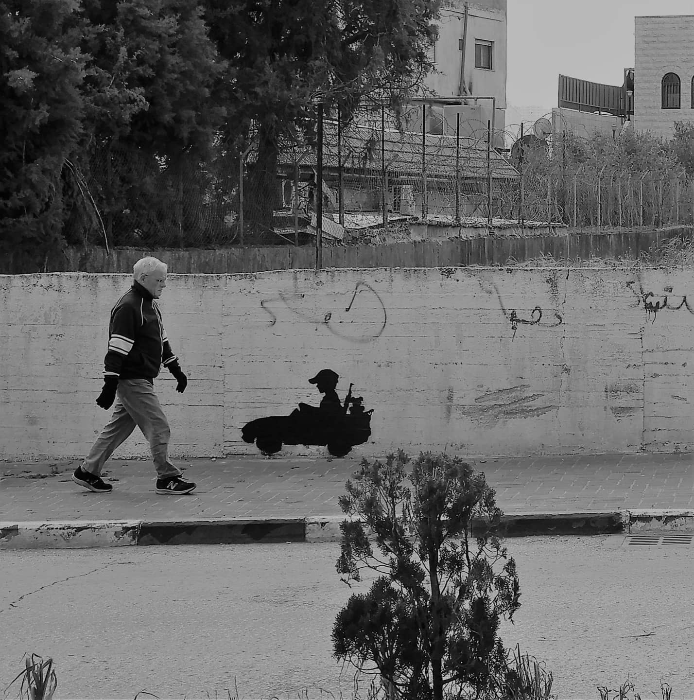 A Betlemme il muro taglia la città lungo quelle che erano le sue strade più vive, tanto che, con gli anni, molte delle attività lì vicino hanno dovuto chiudere. Mathieu mi mostra le foto di una scuola a ridosso del muro: le finestre sono cementate, e si vedono buchi di proiettile sulla porta; l’edificio ora è abbandonato. L’anno scorso, Banksy ha aperto il Walled Off Hotel, l’albergo con “la vista peggiore al mondo”, alle sue porte. Le dieci camere e la galleria d’arte aperta al pubblico cercano di portare l’attenzione al problema, oltre che sostenere l’economia locale.