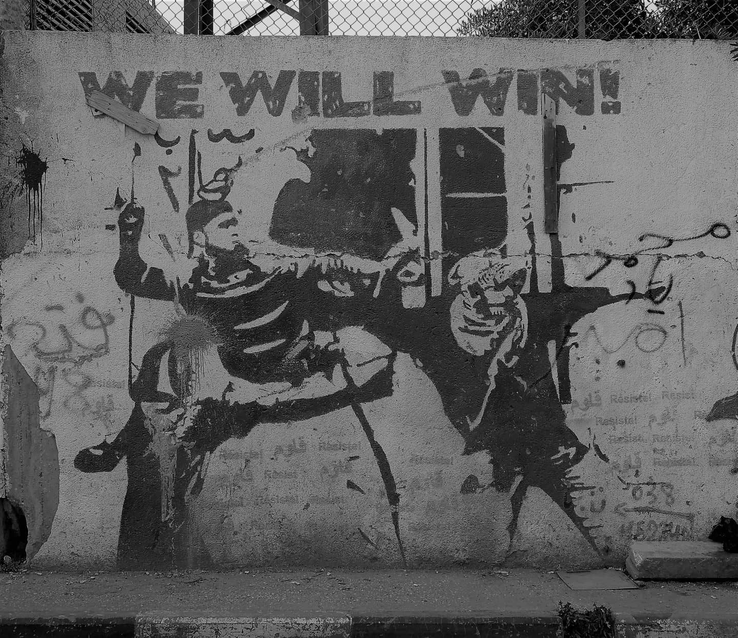 Dipingere sul muro che separa la Cisgiordania dai territori israeliani