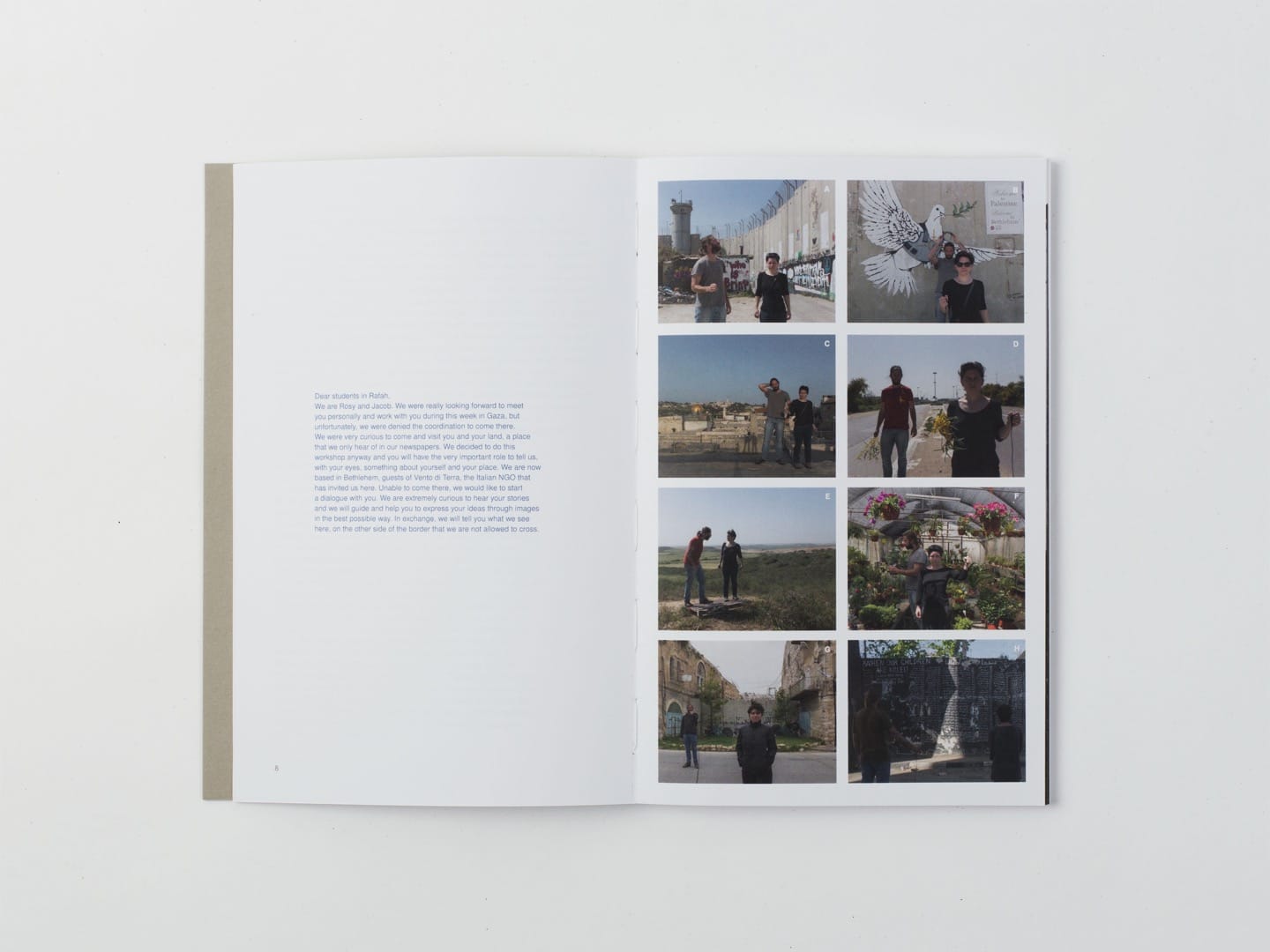 R.S.: Non entrerò troppo nei dettagli perché rovinerei le sensazioni che speriamo di suscitare in chi lo sfoglia. Dovevamo fare una pubblicazione per Vento di Terra ma non volevano assolutamente ricadere nel cliché dei bambini sorridenti, volevamo fare qualcosa che non trasmettesse non solo l’idea di un obiettivo raggiunto ma che permettesse al pubblico di pensare. Inizialmente la ONG aveva trovato il titolo Coordination Denied troppo incentrato sulla nostra esperienza; siamo poi riusciti a convincerli che quello era l’angolo giusto per introdurre il problema e lasciare che i ragazzi si raccontassero da sé. Un permesso negato che noi abbiamo provato sulla nostra pelle per pochi giorni, è la vita di tutti i giorni per i palestinesi. Farci autoritratti da mandare ai ragazzi è stata un po’ la nostra forma di protesta. Quando poi ci siamo confrontati con la grafica, Roberta Donatinit, ci è subito piaciuta l’idea di usare le nostre foto come un muro che contenesse le foto dei ragazzi. Dà un po’ l’idea di sbirciare attraverso il muro di quel luogo proibito che è Gaza.