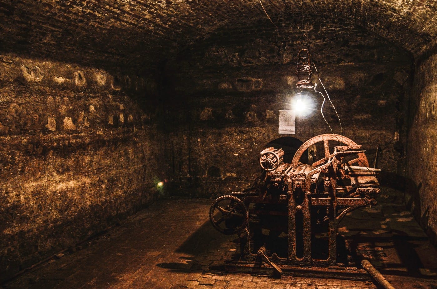 Leggenda vuole che un fiammifero acceso fu lanciato nel pozzo dagli agenti per capire cosa si trovasse alla sua base, ma un soffio di vento spinse la fiamma nel canale laterale, rivelando così il tunnel che dava accesso alla sala nascosta. La tipografia, dopo la distruzione di tutto il materiale stampato e di buona parte dell’attrezzatura, venne chiusa e lasciata marcire per trentun’anni, fino a quando Stalin non divenne il leader dell’URSS e decise di dare alla struttura una seconda vita trasformando il laboratorio clandestino in un museo. Una volta restaurata la stampante e costruita una scala a spirale per permettere ai visitatori l’accesso alla camera sotterranea, la tipografia di Stalin diventò un’attrazione popolare tra i turisti interessati a conoscere le origini della rivoluzione del 1917. Ascoltare questa storia mentre scendo sui fragili gradini verso la sala scura ed umida in cui si trova la stampante ormai coperta completamente da uno strato di ruggine arancione è un’esperienza surreale. Una mappa illuminata da una lampadina appesa al soffitto mostra la rete di passaggi in cui, originariamente, era necessario calarsi per raggiungere la stanza, mentre sul soffitto si vede il foro dal quale si doveva calarsi per entrare.