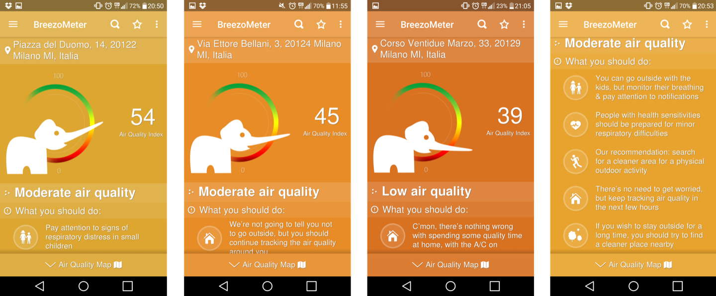 Le app di health&fitness leggono i dati real-time di Milano e impazziscono, tempestando l’utente di notifiche per avvertirlo del rischio cui si trova esposto e arrivando addirittura a intimargli di non uscire di casa.