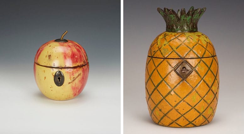 Guarda queste confezioni di tè intarsiate in legno pregiato, rinforzate col piombo e dipinte a mano, di quando il tè era così prezioso da meritare scatole non di cartoncino. (Atlas Obscura)