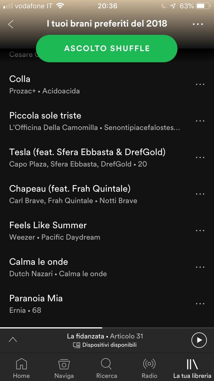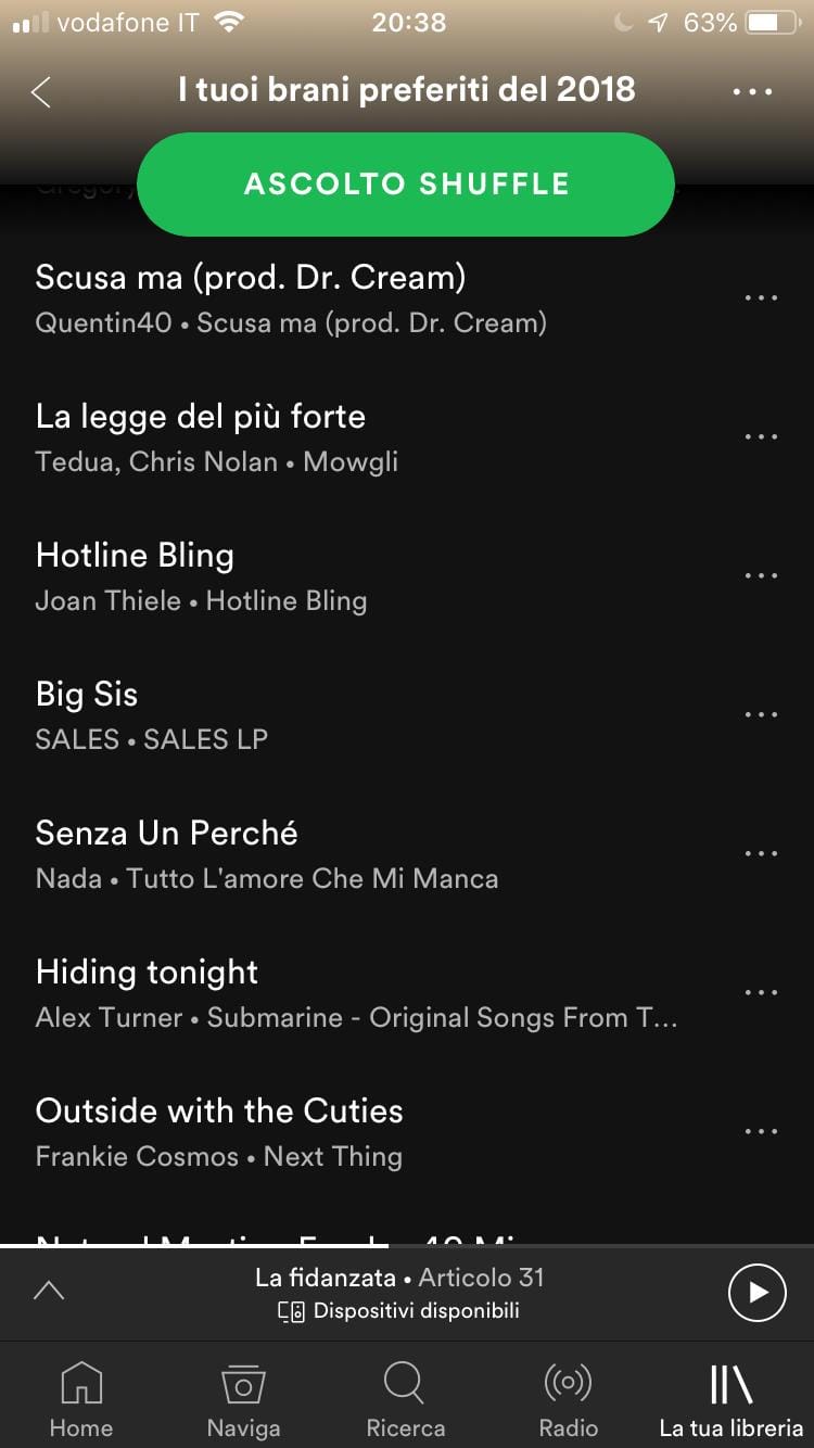 Ci siamo fatti lasciare qualche screen della sua playlist dei brani preferiti del 2018.