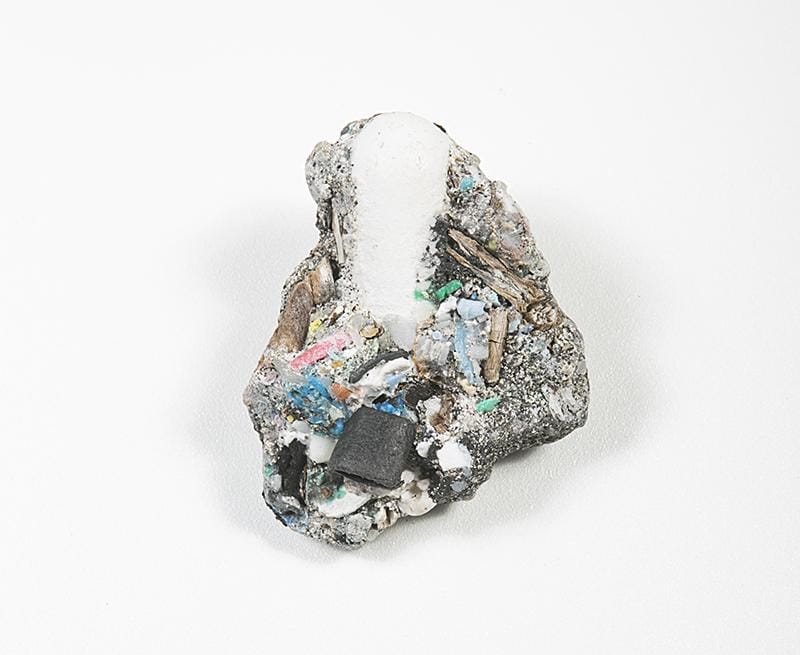 Sempre mediato dall’arte ma diverso per approccio e contenuti è lo studio dell’artista canadese Kelly Jazvac, condotto con la geologa Patricia Corcoran a partire dalle ricerche dell’oceanografo Charles E. Moore sui plastiglomerati, termine coniato per indicare un nuovo tipo di oggetti, mai visti in precedenza. Si tratta di composti, fatti di sedimenti rocciosi e marini, conchiglie, pezzi di legno e detriti di plastica fusa, ora indurita e aggregante le varie componenti. Come classificarli? Rocce? Manufatti? Qualcuno ha proposto suggestivamente l’aggettivo “post-naturale.” Ci troviamo ad un punto in cui il discrimine tra natura e cultura diviene talmente labile da non avere più motivo di esistere — un fil rouge che unisce molte delle riflessioni sull’Antropocene.