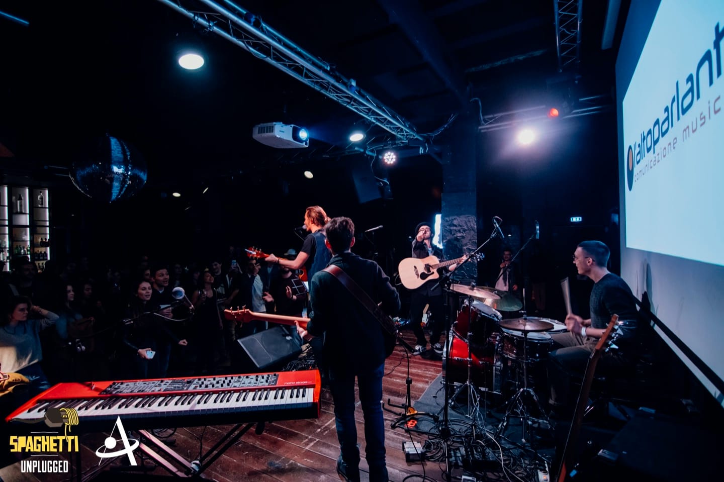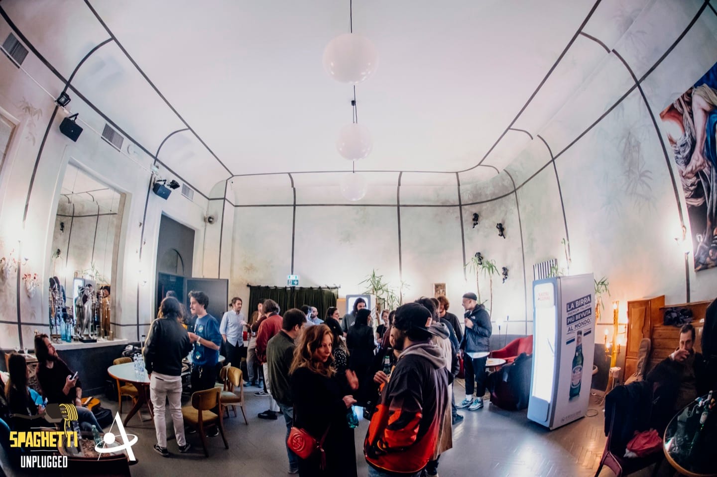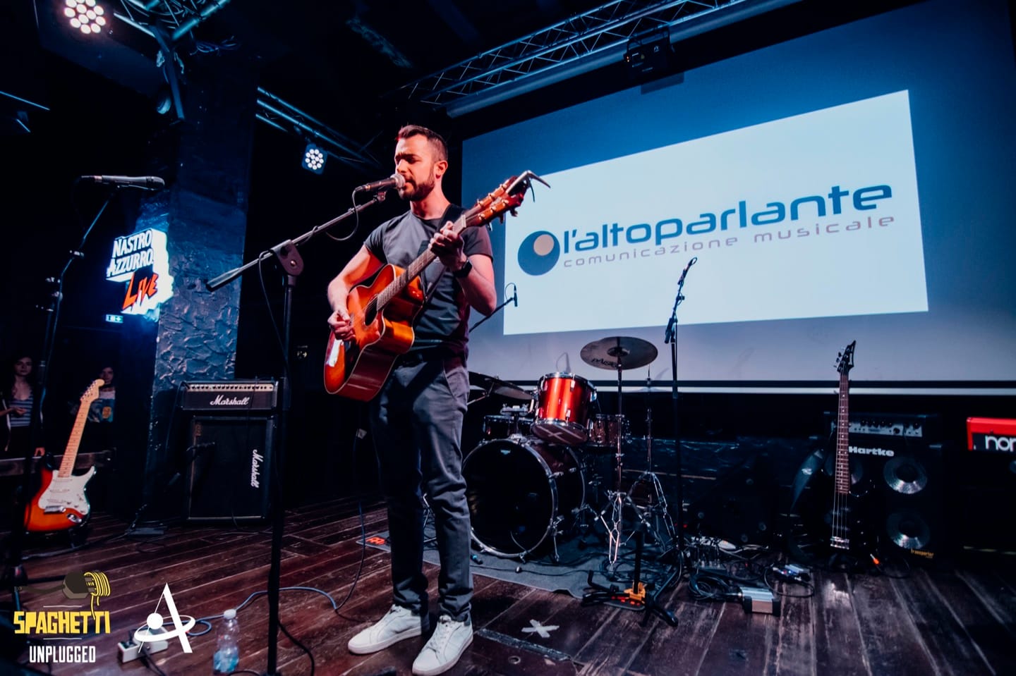 La cornice è quella dell’Apollo, locale milanese collocato tra i navigli di Milano, nelle vie che circondano la Darsena e il cuore della vita notturna della città. Il progetto Spaghetti Unplugged “nasce perché un mio amico e cantautore Antonio Rossi, meglio noto come Rosso Petrolio, è tornato da Londra dopo aver visto questa realtà degli open mic molto florida” racconta Davide Dose, che assieme a Gianmarco Dottori nel 2013 ha dato vita a questo format. “Mi disse, ‘zi facciamo una roba del genere’, così abbiamo iniziato a proporre la serata ad alcuni locali piccoli, inizialmente per dare spazio a noi stessi, che avevamo delle velleità cantautorali, e ad altri artisti”. Con il passare del tempo, complice la fioritura di una nuova scena musicale, la serata romana è cresciuta ed è stata progettualizzata diventando un vero punto di riferimento per gli artisti romani e italiani, nonché un format replicabile in altre città. “Erano gli anni in cui a Roma chiudeva il Circolo degli Artisti” prosegue Davide, “noi ci siamo inseriti in quella tradizione di punti di ritrovo anche cantautorali dove i musicisti si incontrano e si confrontano.”