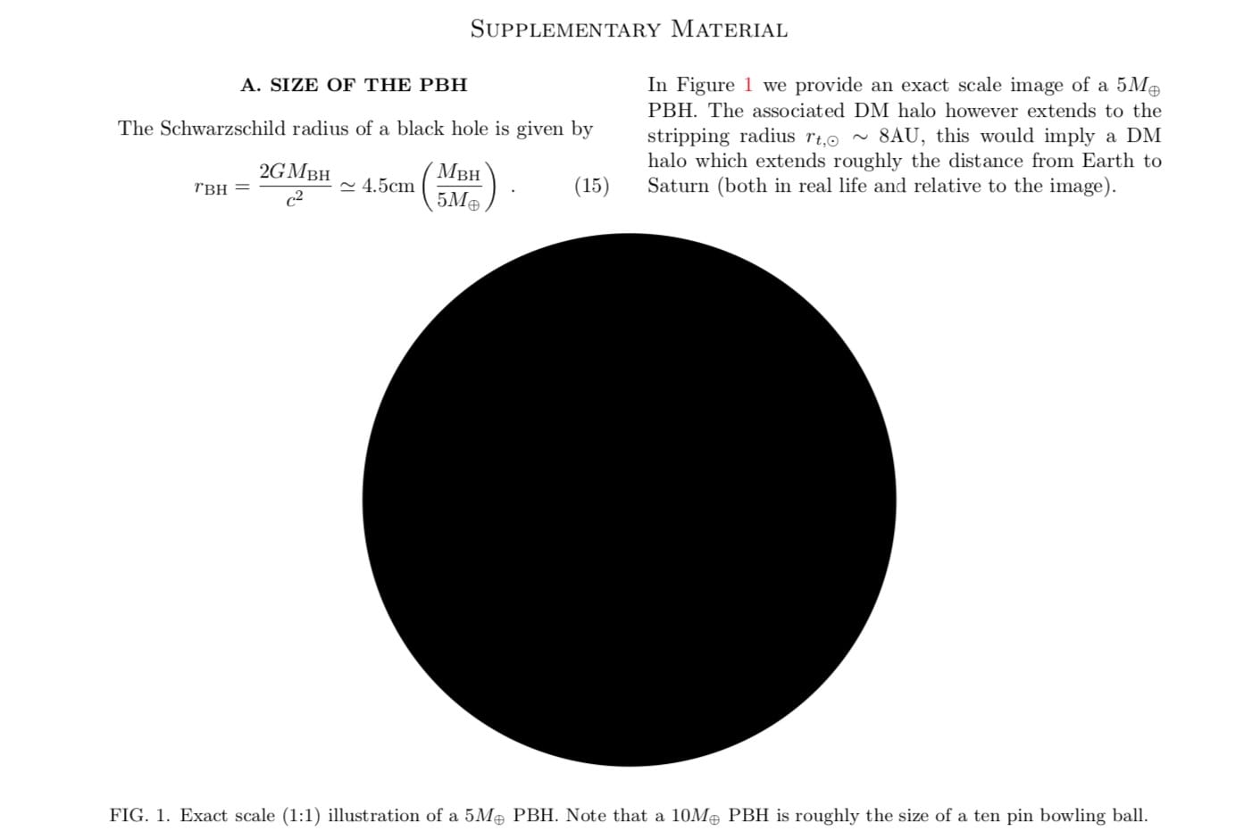 Questo paper presenta un’ipotesi intrigante: e se invece di esserci un “nono pianeta” che non abbiamo ancora scoperto nel nostro sistema solare, ci fosse un piccolissimo buco nero primordiale? Secondo i calcoli dei due ricercatori dovrebbe avere un diametro di circa 10 cm. Per rendere l’idea di quanto sia grande hanno perfino fatto un cerchio nero nel loro paper, per cui sapete che sono seri. (arXiv, spiegato per esseri umani da Ryan Mandelbaum su Gizmodo)
