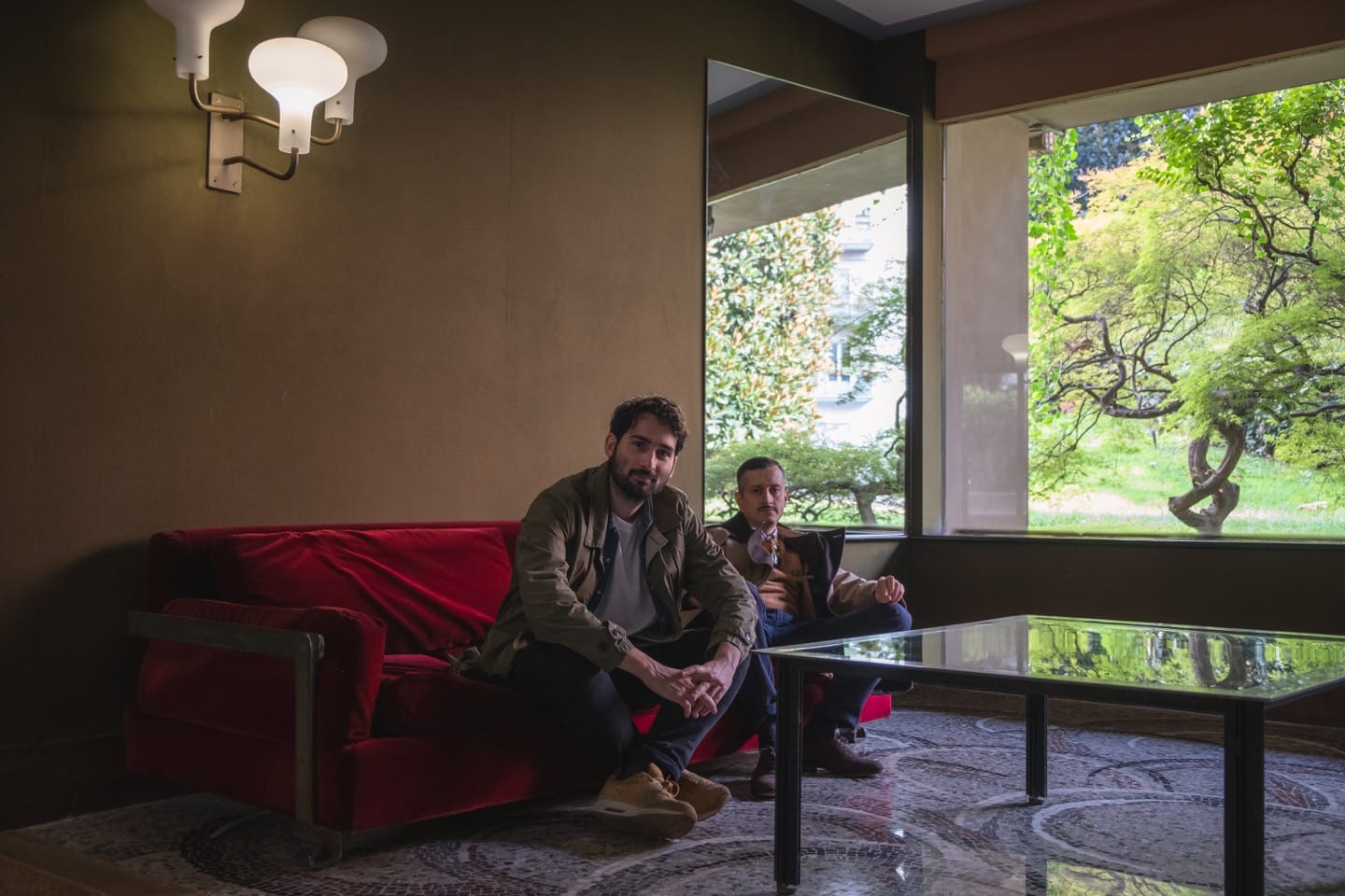 I Ricordati di Rimini sono Alessandro Cianci e Andrea Barbara — in arte Iamseife — e sono usciti da poco con due singoli, “Edwige Fenech” e “La fine delle onde,” fuori per Vetro Dischi. I loro pezzi guardano al cantautorato moderno ma sono orgogliosamente calati nel passato, così abbiamo deciso di accompagnarli in un tour nostalgico per le vie di Milano scoprendo ingressi d’altri tempi, lampadari molto impegnativi e marmi tirati a lucido. Tra un portone e l’altro abbiamo elogiato Mecna, tirato in ballo Oneohtrix Point Never, e ovviamente abbiamo anche parlato del loro progetto e di quanto nella musica sia importante continuare a sperimentare.