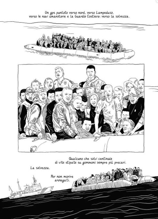 Libia è il nuovo graphic novel d’inchiesta scritto dalla giornalista Francesca Mannocchi, nota per i suoi reportage sui migranti e sul traffico di esseri umani in Libia, e disegnato da Gianluca Costantini. (TGCOM 24)