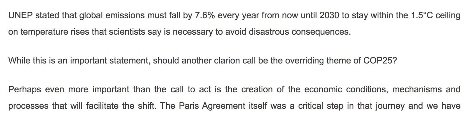 Plenary is about to start at #Cop25. The latest text has been released this morning and all the language on ambition has been scrapped. Countries are now "invited" to "communicate" by 2020 their mid and long-term climate plans. No language to "update" or "enhance". pic.twitter.com/GZ5WgOBGOl