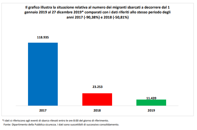 È anche grazie a questi numeri che, in Italia, la politica può esultare di fronte alle ultime statistiche diffuse dal Viminale, che parlano di una diminuzione degli sbarchi del 90% rispetto al 2017 e del 50% rispetto al 2018. Ma specifichiamo: se anche tutti i migranti deportati dalla Guardia costiera libica fossero riusciti a raggiungere l’Italia, il numero sarebbe comunque inferiore a quello dell’anno scorso. (Interno.gov, PDF)