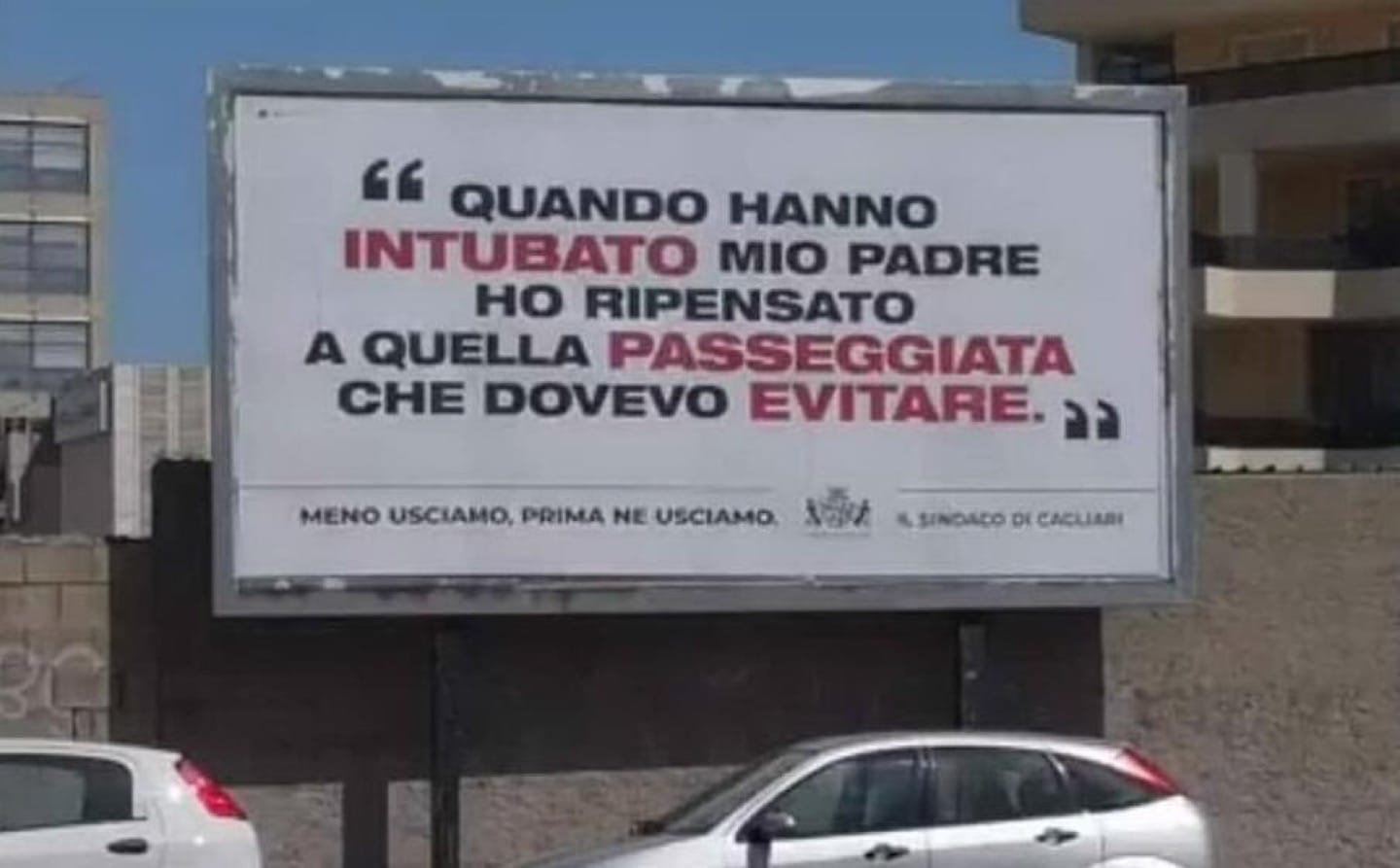 Oggi stanno scatenando fortunatamente polemica una serie di manifesti voluti dal sindaco di Cagliari Paolo Truzzu (Fratelli d’Italia). Sotto lo slogan “meno usciamo, prima ne usciamo,” i manifesti leggono frasi minacciose e colpevolizzanti — “Quando hanno intubato mio padre ho ripensato a quella passeggiata che dovevo evitare,” “Quando hanno portato mia madre in ospedale, ho capito che dovevo rinunciare alla corsa,” e “Quando mio figlio è stato contagiato, ho capito che dovevo rinunciare a quella spesa inutile.” Involontariamente sembrano citare la durissima comunicazione del Partito Comunista cinese contro la diffusione del virus — il nostro preferito è questo striscione in cui si legge “Possiamo vederci oggi per pranzo, e domani in ospedale” — con una differenza sostanziale: come ha detto anche il vicepresidente della Croce Rossa cinese Sun Shuopeng, in Italia “ora è il tempo di chiudere le attività.”