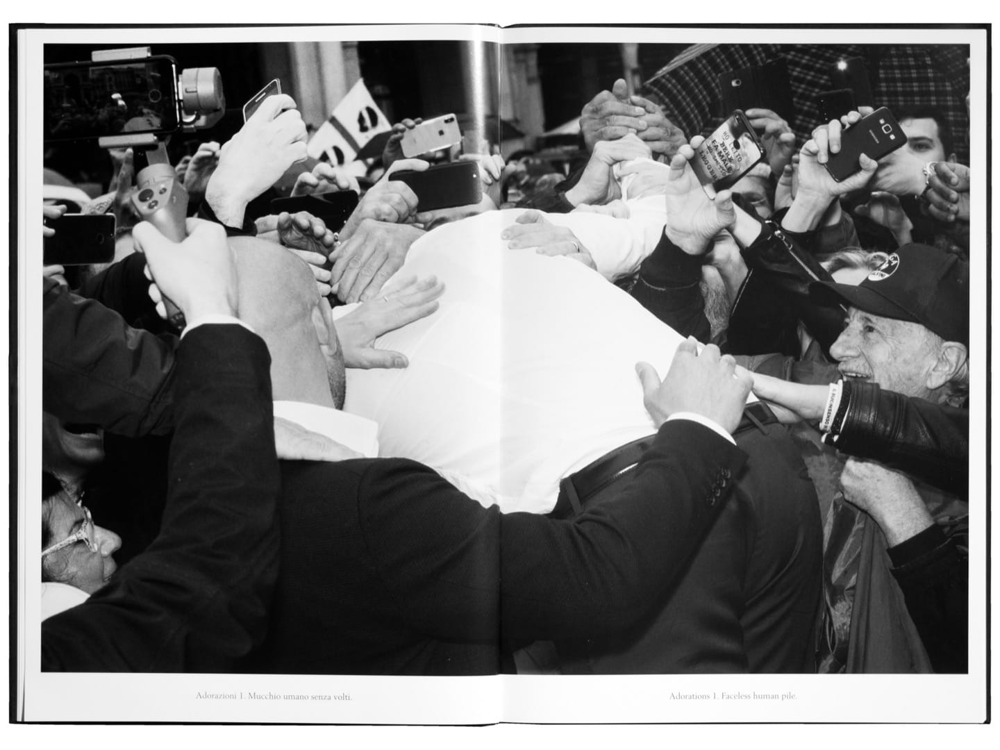 Il Corpo del Capitano – edito da Cesura Publish a ottobre 2020, casa editrice indipendente del collettivo fotografico Cesura – indaga la figura di Salvini e la restituisce in un viaggio per immagini che attraversa gli ultimi due anni di attività politica – e privata – del leader, analizzandone in particolare il linguaggio del corpo, portato all’estremo da atmosfere cupe, grottesche, distopiche.