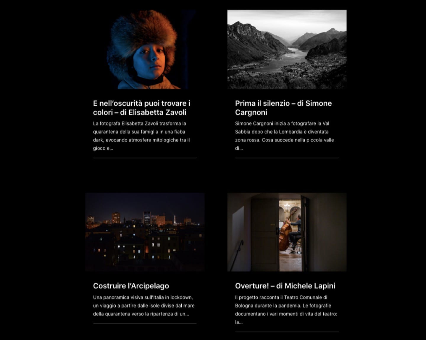 Per noi è importante il rispetto delle soggettività: non vogliamo ragionare sugli stereotipi di questa crisi e nemmeno invitare le persone a uscire di casa, ed è per questo che nel racconto includiamo non solo le fotografie dei professionisti inviati sul campo ma anche testimonianze più personali, il racconto delle nostre case e di quello che vediamo stando fermi.”