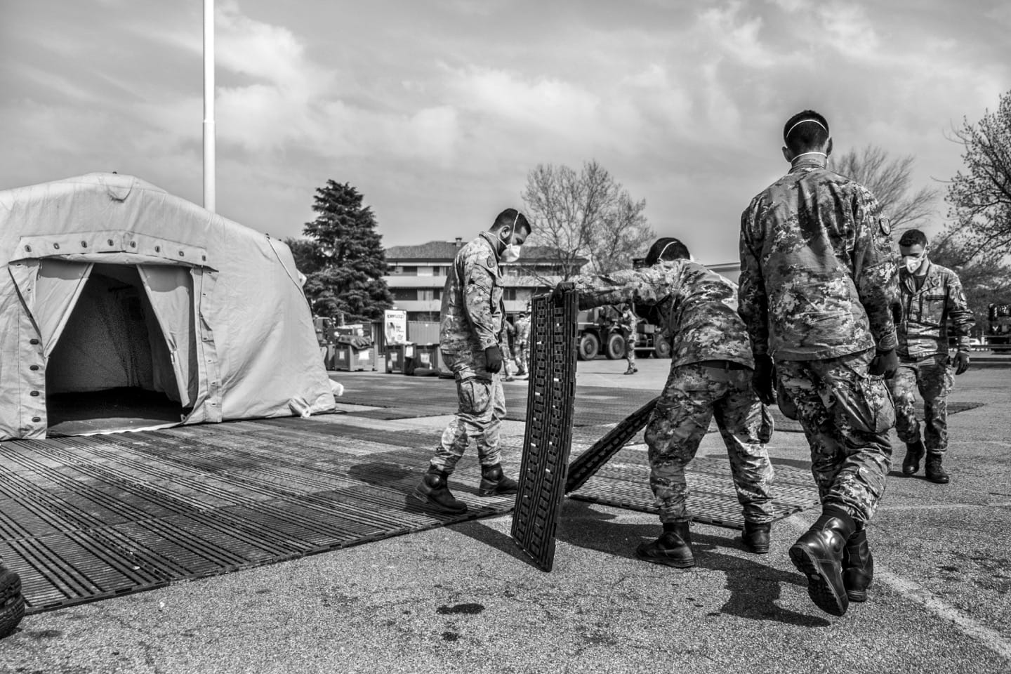 A questo punto, in una situazione di difficoltà che non accenna a migliorare, “si inizia a chiedere aiuto”: prima alla regione e poi, attraverso il ministro della difesa Guerini, “rispetto alla possibilità di aumentare il personale o costruire ospedali da campo.” Il ministero interviene come può, con la costruzione di una struttura da campo. Tuttavia non è disponibile ulteriore personale. Avviene di conseguenza una triangolazione con la regione e il ministero della Salute: “Il ministro Speranza, su indicazione dell’associazione Italia-Cuba, viene a conoscenza di questa disponibilità dei sanitari cubani a fare azioni di solidarietà anche a livello internazionale e decide di contattarli.” Anche in questo caso si tratta di un esempio che è parte di un’azione più ampia: in quel periodo Speranza prende contatti con enti sanitari internazionali su più fronti. È in quel momento che arriva anche un gruppo di medici cinesi a Bergamo.