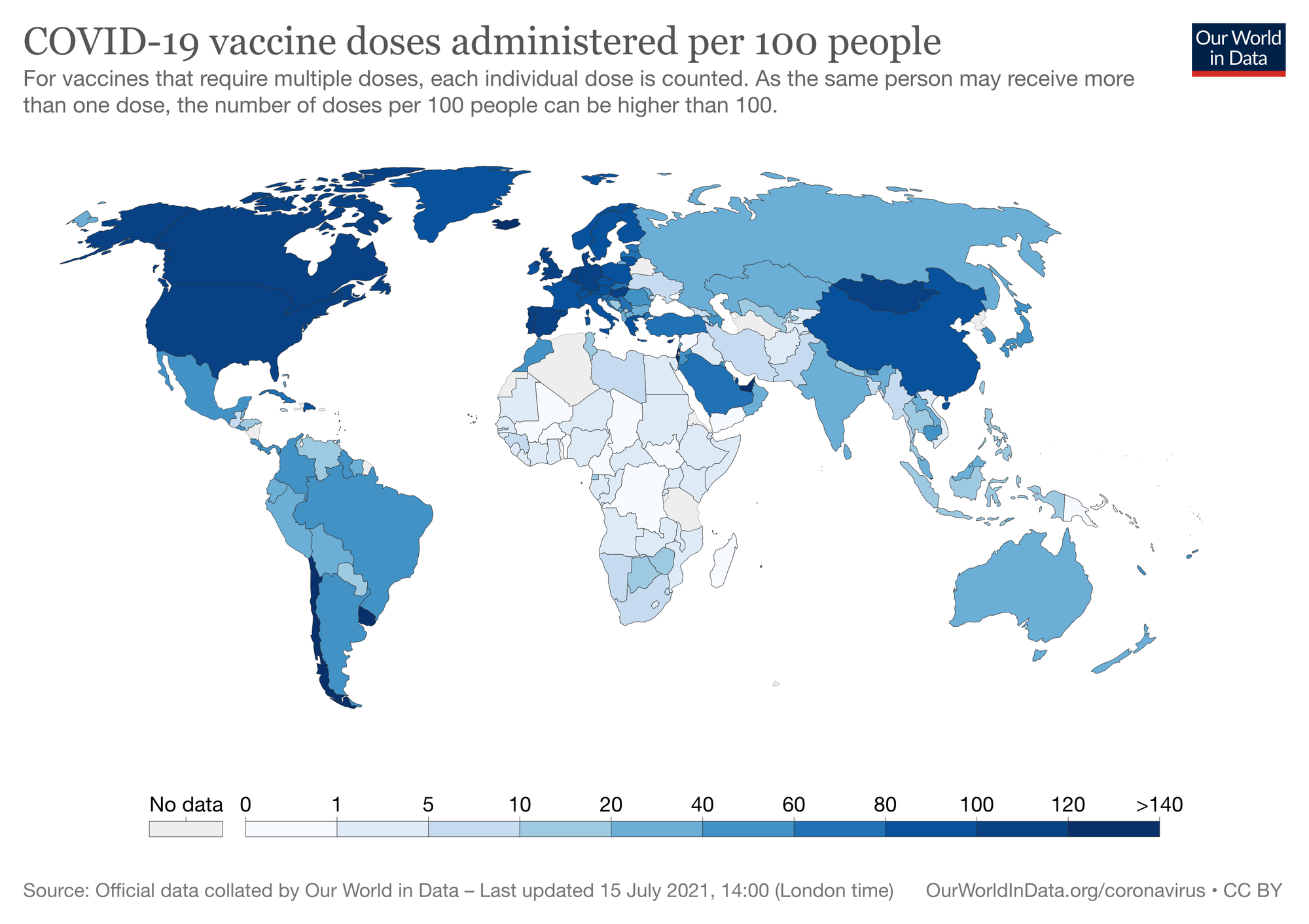 La combinazione di variante Delta e scarsità di vaccini mettono a rischio il Medio Oriente: dopo otto settimane di decrescita, il numero di positivi è tornato ad aumentare in modo drastico in Libia, Iran, Iraq, e Tunisia, e la situazione potrebbe aggravarsi anche in Libano e in Marocco. L’ondata arriva a pochi giorni dalle celebrazioni della Id al-adha, che si terranno la settimana prossima, e che potrebbero costituire un’ulteriore occasione di contagio. Ieri Ahmed Al-Mandhari, il direttore regionale dell’OMS per il Mediterraneo dell’Est ha espresso la propria preoccupazione, dicendo che la regione “si sta avvicinando a un punto critico.” Al-Mandhari attribuisce all’affaticamento pandemico la minore adesione alle misure anti–contagio, ma indica come principale causa della crisi di questi giorni il fallimento di una politica internazionale di distribuzione ugualitaria dei vaccini: “Anche se sono stati fatti progressi, rimane uno sbilanciamento scioccante nella distribuzione globale dei vaccini, e questo lascia milioni di persone esposte a varianti mortali. Non è troppo tardi per invertire la marcia della pandemia, ma questo richiede un rinnovato impegno globale, regionale e nazionale.” Il tracker delle vaccinazioni di Our World in Data mette in evidenza come l’Africa e il Medio Oriente siano stati isolati e abbandonati dal resto della comunità internazionale.