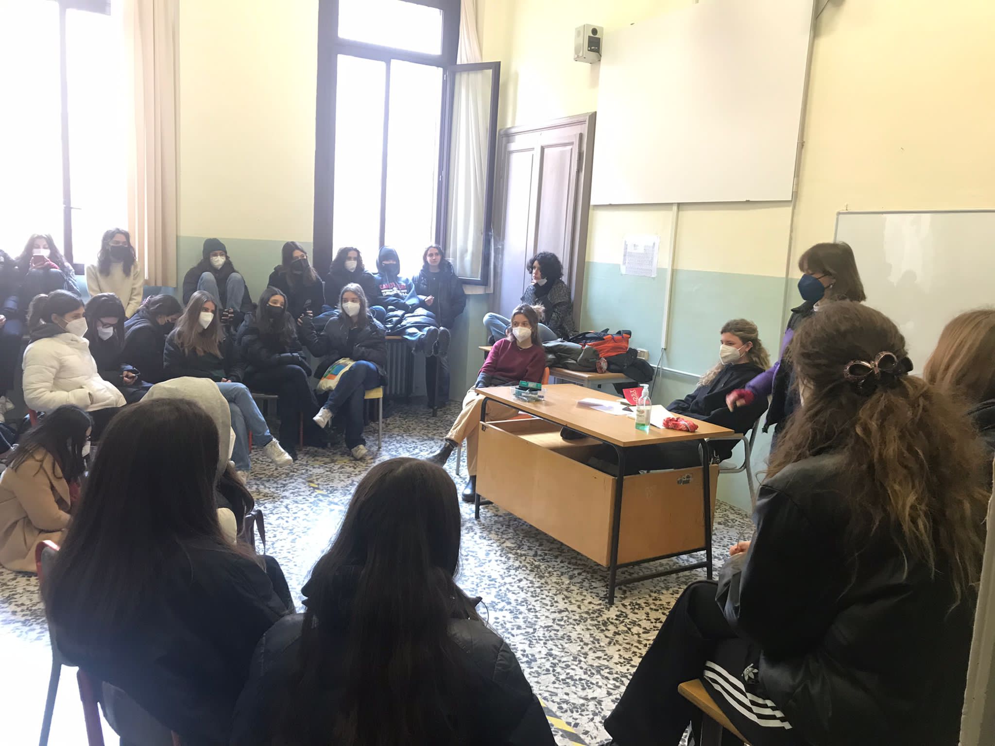 La parola d’ordine infatti è occupazione sicura, anche per controbattere alle illazioni che da inizio pandemia indicano i giovani come untori. D’altronde, come ha mostrato una ricerca del magazine Nature, le scuole — se messe in sicurezza — non vanno considerate hotspot di contagi e i focolai che si verificano all’interno coinvolgono un numero basso di persone. Per gestire in maniera ordinata le assemblee, all’interno del liceo non sono ammessi ospiti esterni, è obbligatorio l’uso della mascherina FFP2 e l’accesso alle aule è contingentato. Gli occupanti del Manzoni vogliono così mostrare un’alternativa al sistema scolastico attuale che cerchi di conglomerare socialità, sicurezza e apprendimento critico — in opposizione a un modello che, come afferma il rappresentante d’istituto, “ha come unico obiettivo l’ossessiva valutazione basandosi su delle nozioni sterili e acritiche.” Le giornate sono divise in due fasce orarie che propongono collettivi e laboratori riguardanti tematiche che spaziano dall’attualità alla filosofia, ma coinvolgono anche attività sportive — tra questi anche quello di Libera. Le attività si propongono di mettere in dubbio la frontalità delle lezioni per mostrare come un dialogo tra pari sia un efficace veicolo di apprendimento. “Momenti come questi sono importanti sia per l’unione che si crea tra studenti e studentesse ma anche per la controinformazione che si fa all’interno di questi spazi,” evidenzia la studentessa membro del Collettivo, “sedersi su un banco e ascoltare una lezione tra pari tenuta da altri studenti — magari anche più piccoli di te — permettono di uscire dal solito paradigma banchi-studio-professori.”